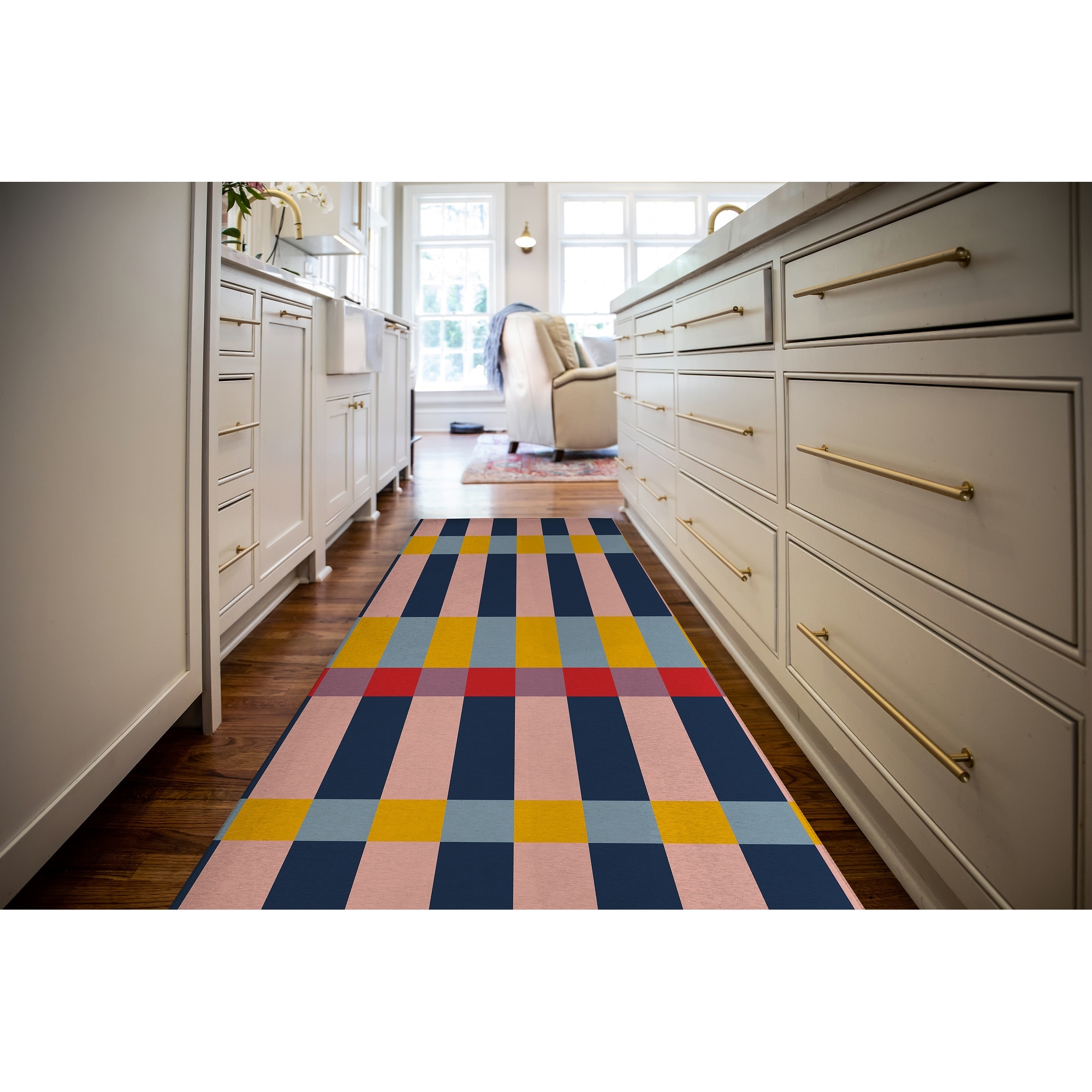 MODERN PLAID BLUE AND PINK Kitchen Mat By Becky Bailey