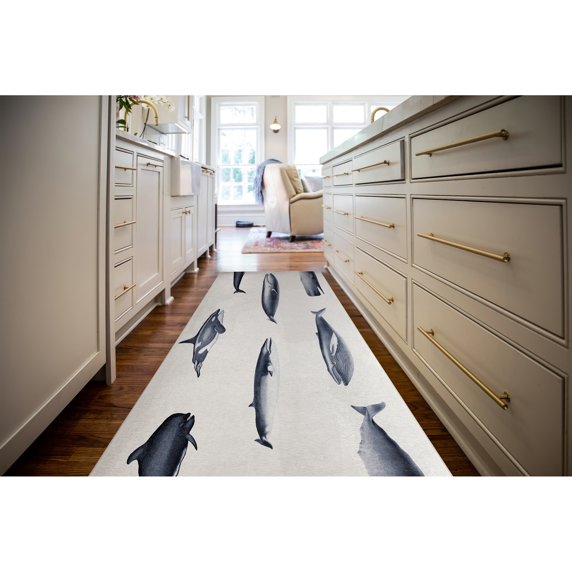 WHALES BLUE Kitchen Mat By Becky Bailey