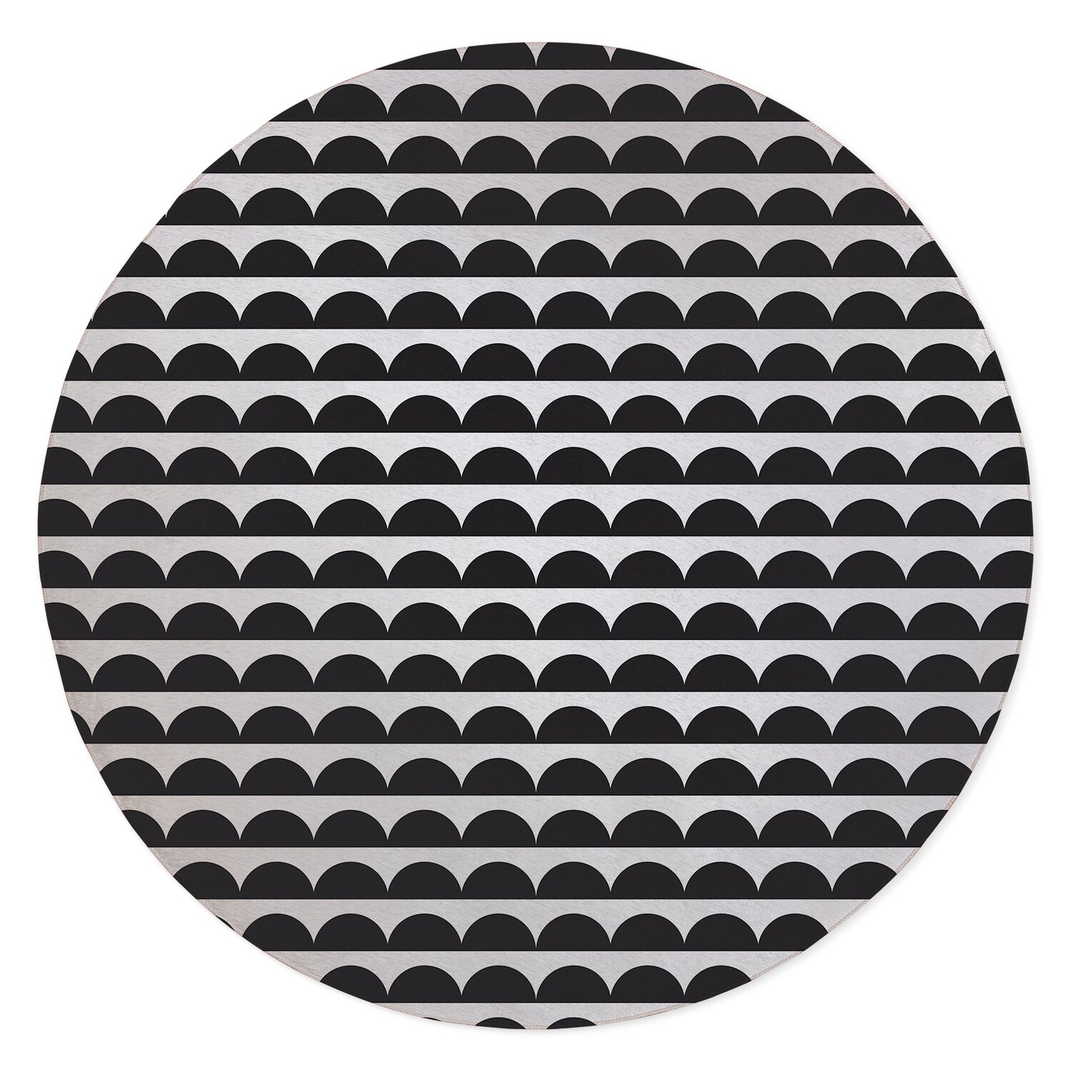 MID CENTURY SCALLOP Black and White Outdoor Rug By Becky Bailey