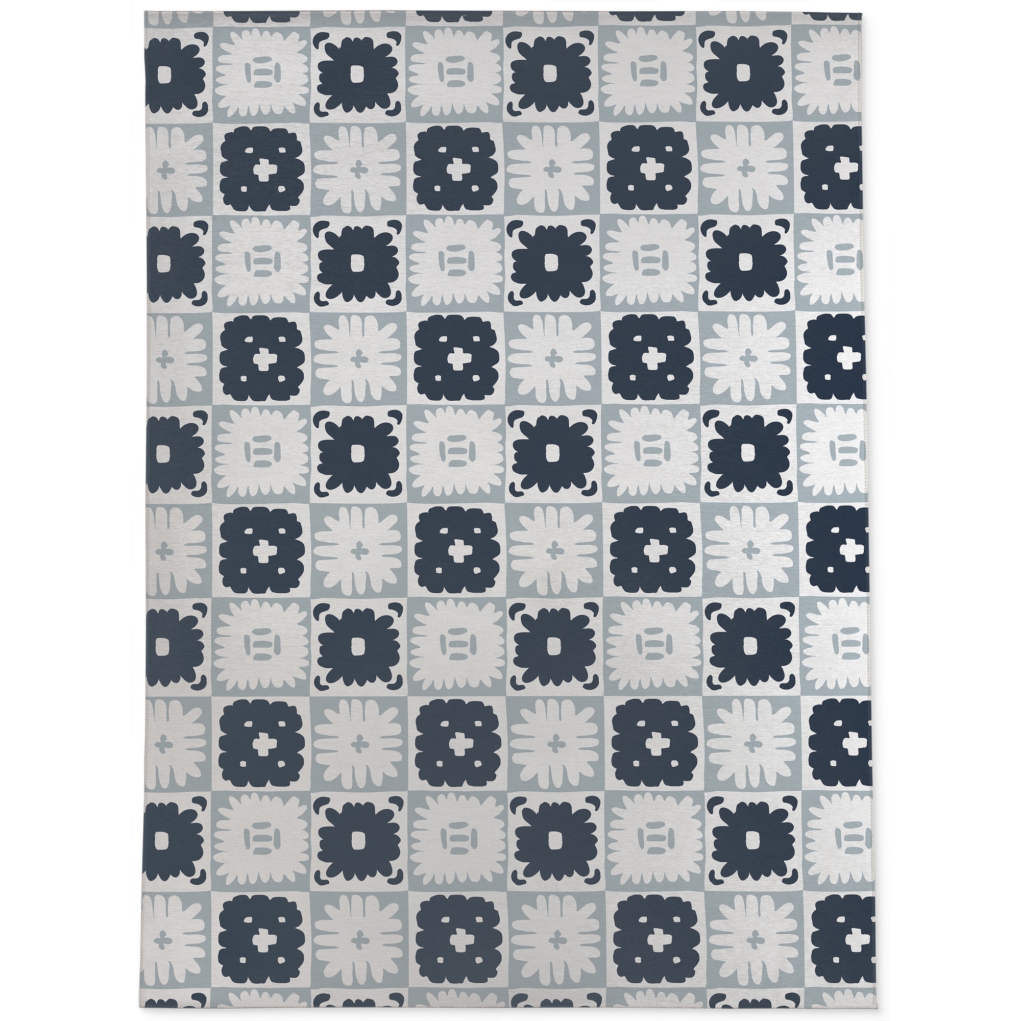 FLORAL GRID LIGHT BLUE Outdoor Rug By Becky Bailey