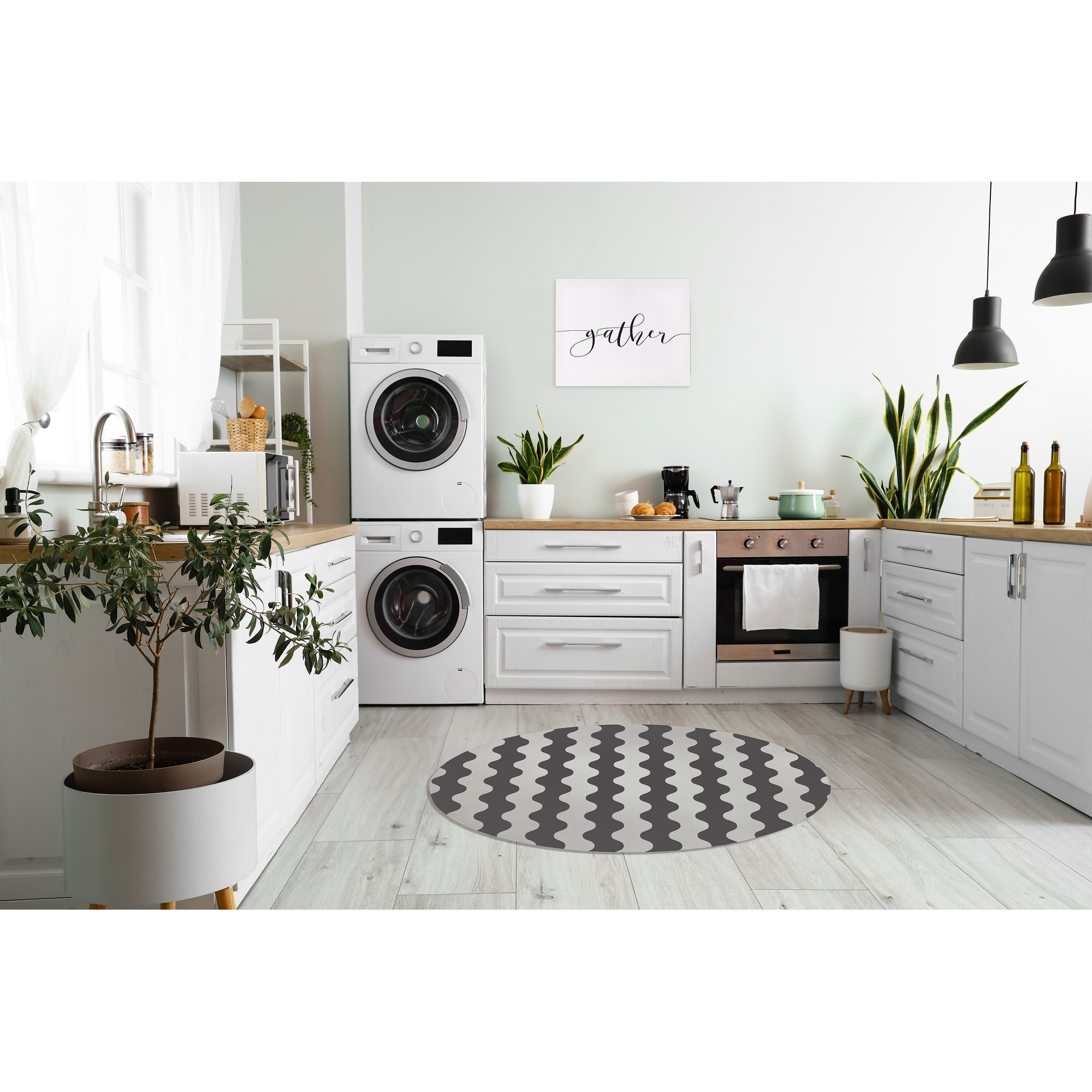 UNDULATING WAVY STRIPES CHARCOAL Kitchen Mat By Becky Bailey