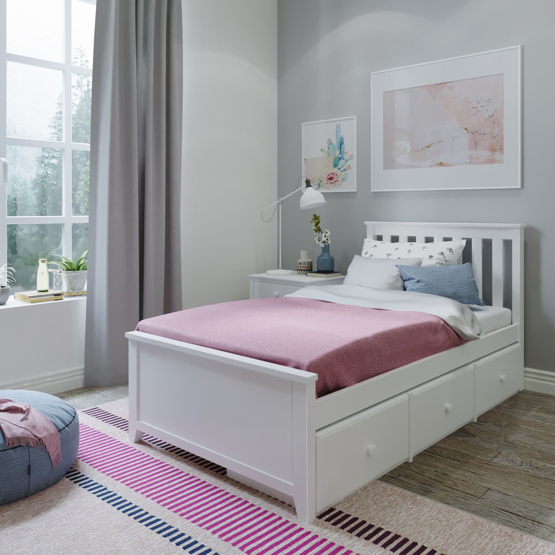 Plank and Beam Twin Size Platform Bed Storage Drawers