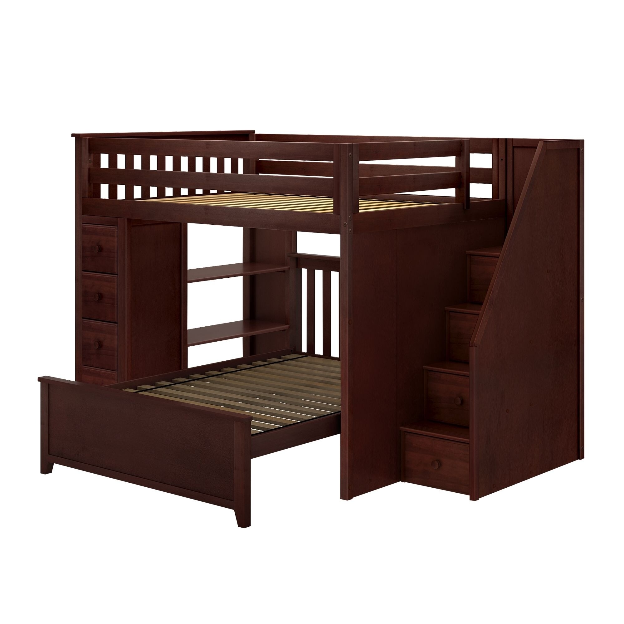 Plank and Beam Full over Full L Shaped Bunk with Staircase and Storage