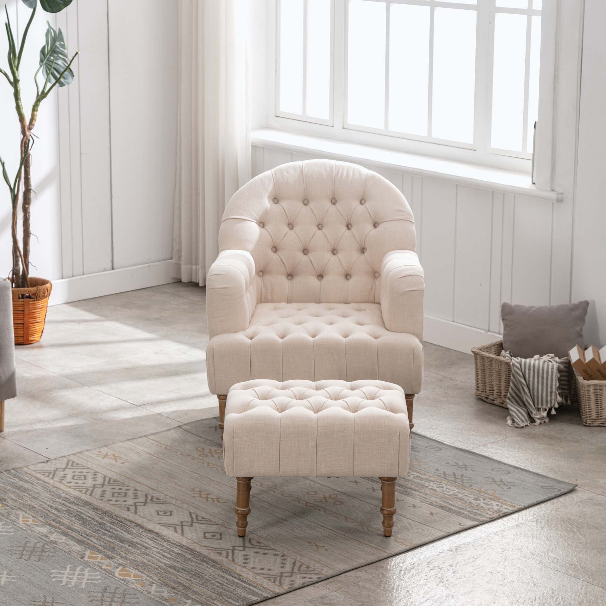 Mid Century Modern Chair with Linen Fabric and Ottoman for Living Room Bedroom Office Lounge
