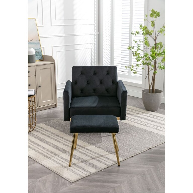 Velvet Accent Chair Modern Upholstered Living Room Accent Chair Tufted Lounge Armchair with Chair & Ottoman Sets for Bedroom