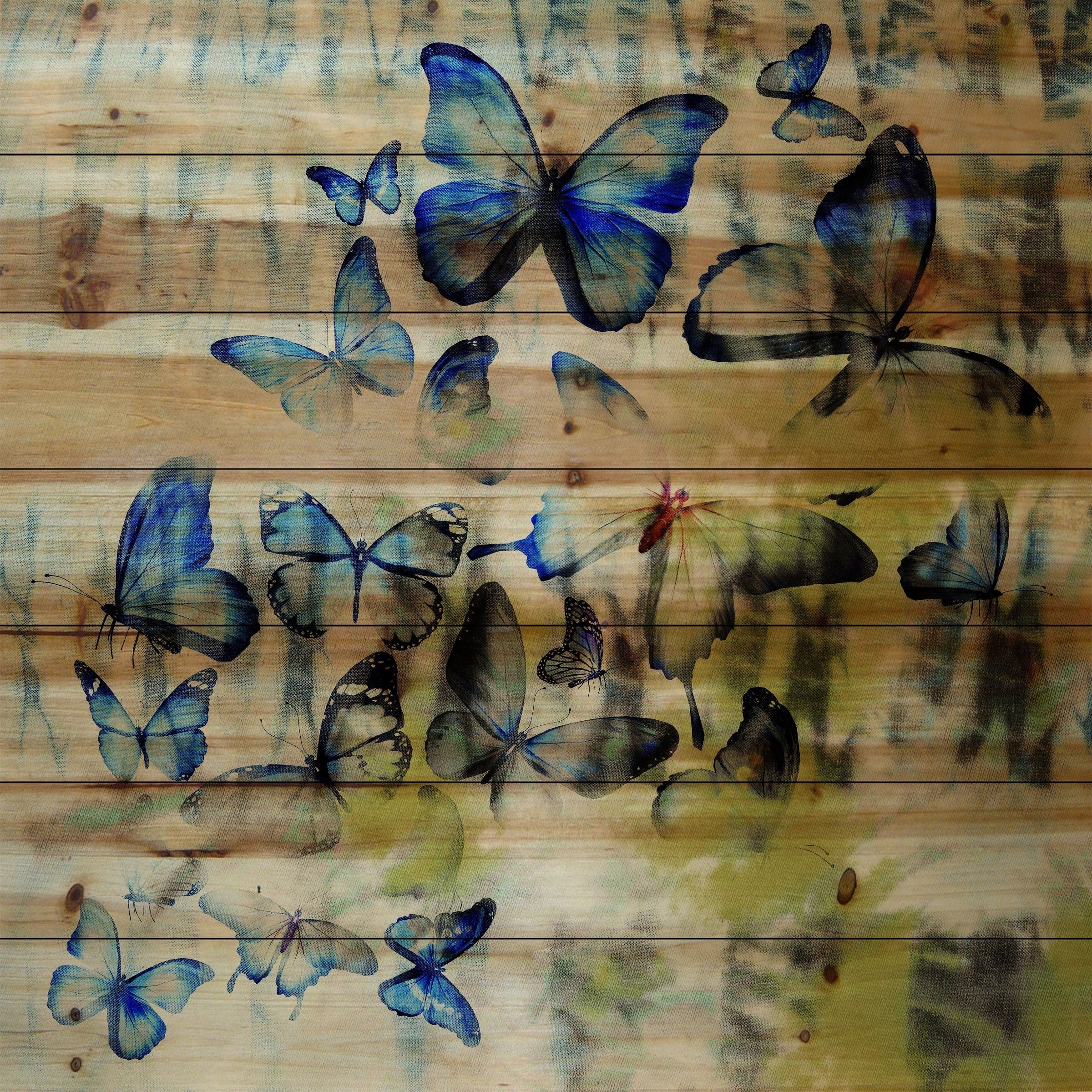 Handmade Parvez Taj - Blued Winged Beauties Natural Pine Wood Art