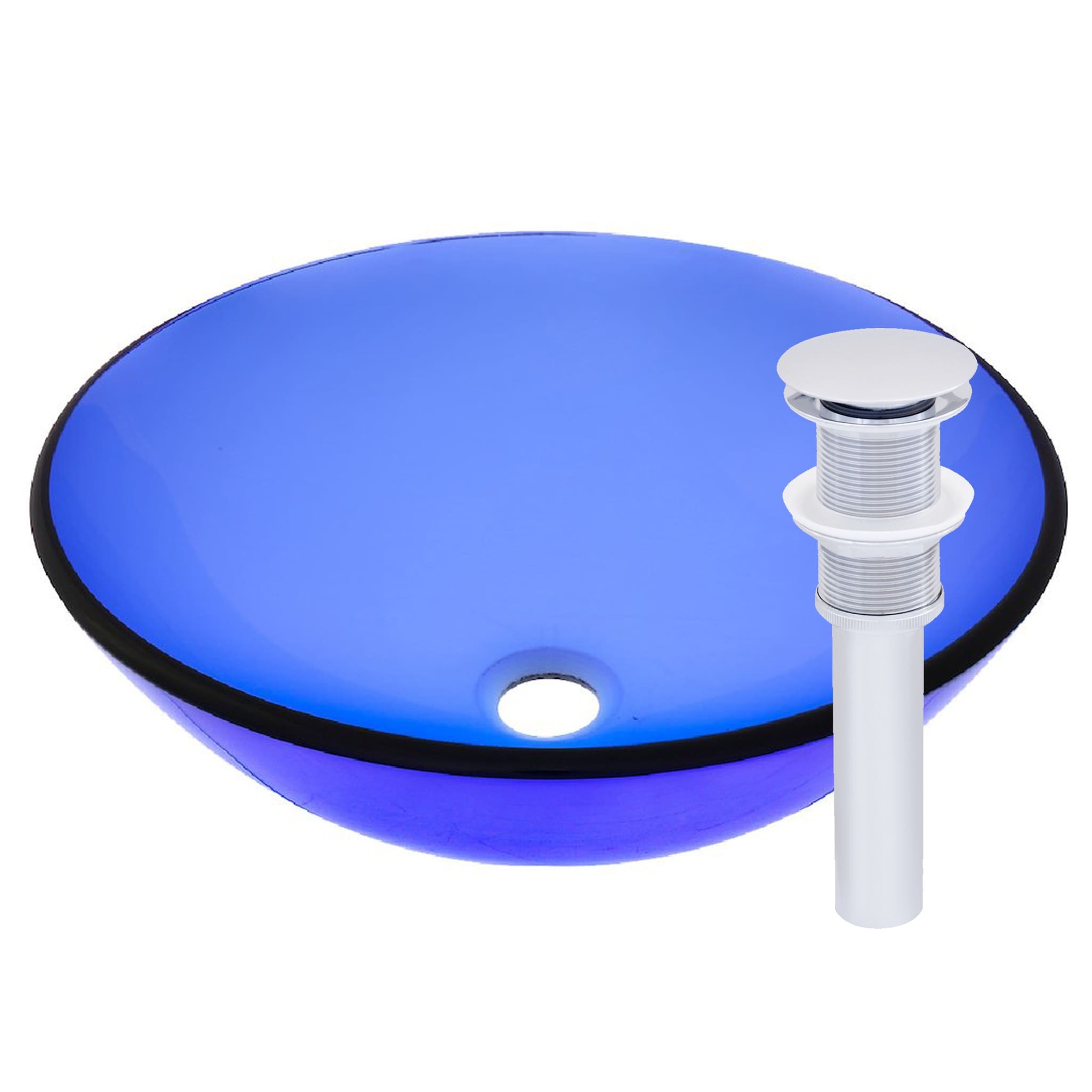 Arsumo BW10-158 Tempered Glass Vessel Bathroom Sink Set - Faucet, Pop-Up Drain and Mounting Ring,Blu