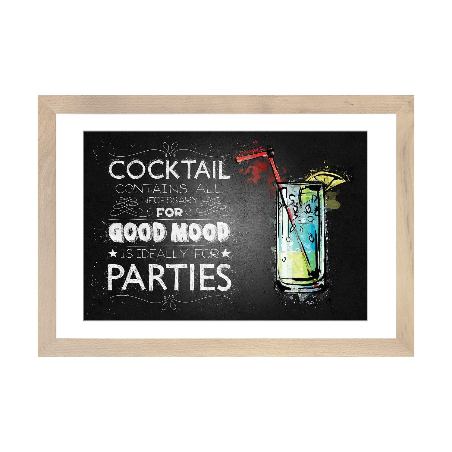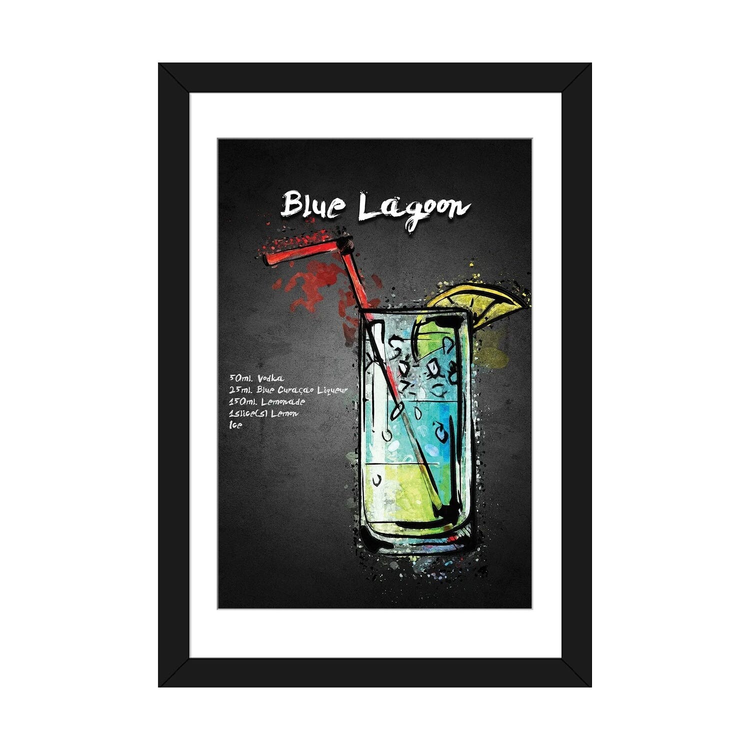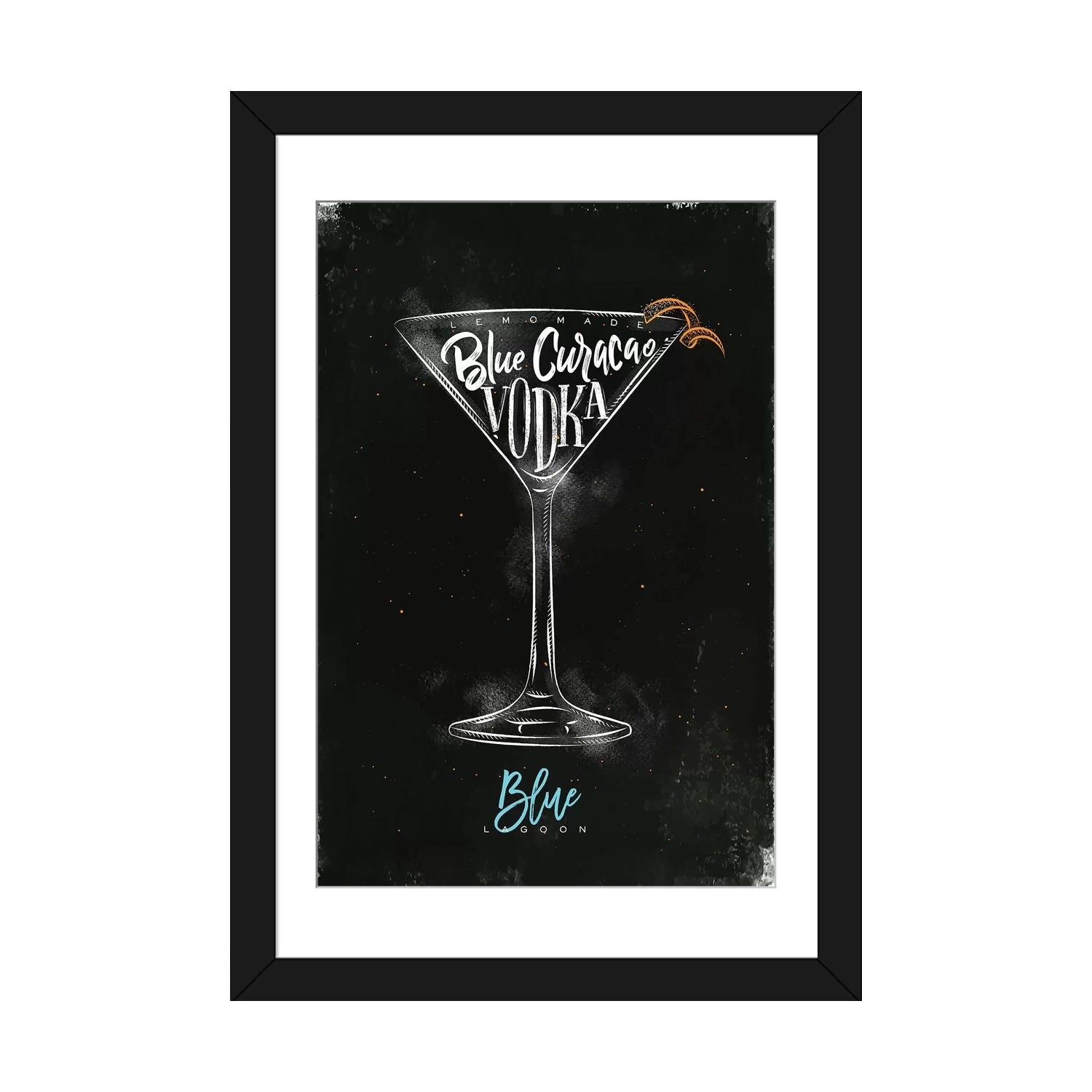 iCanvas "Blue Lagoon Cocktail Black Background" by Pixy Paper Framed