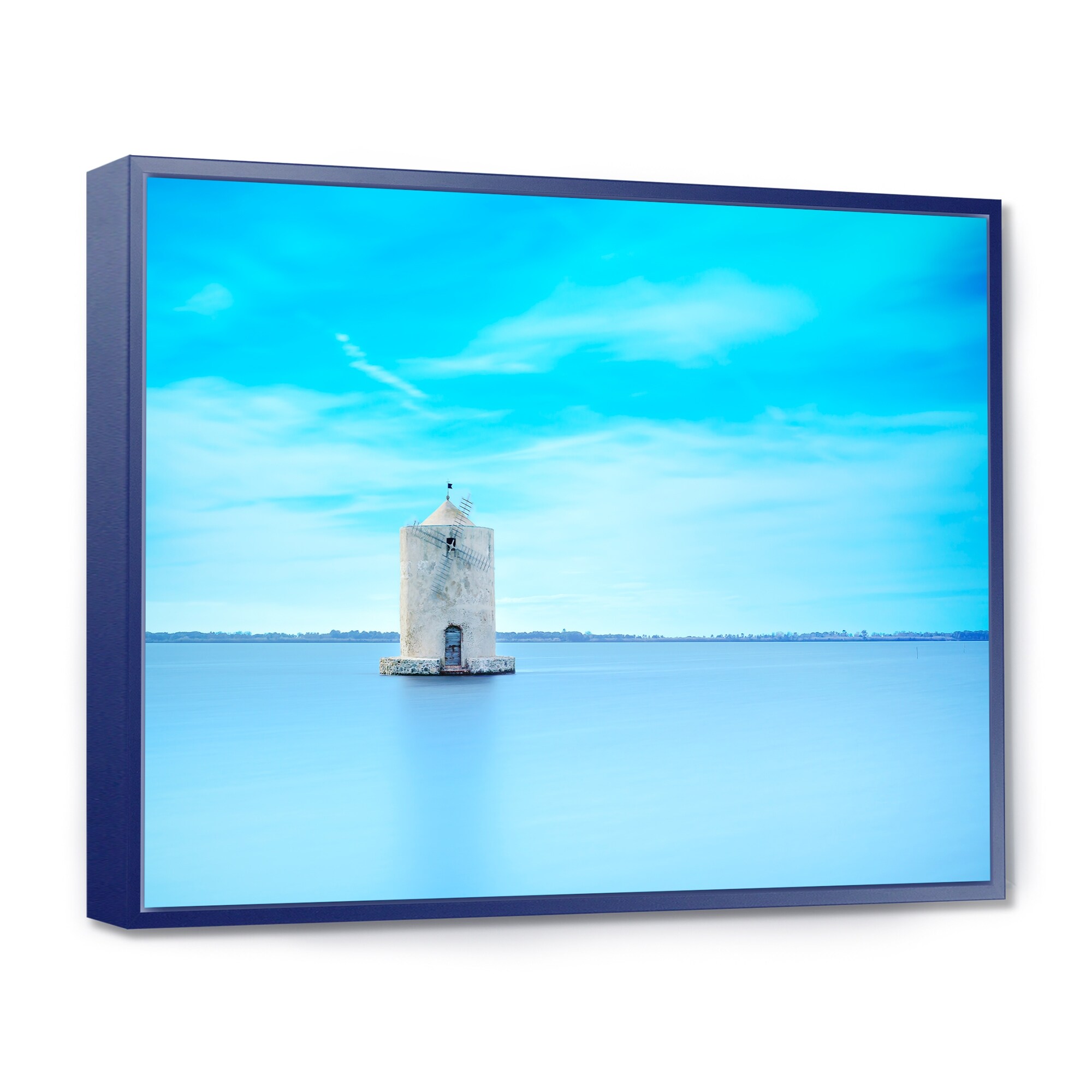 Designart "Old Spanish Windmill in Blue Lagoon" Extra Large Seashore Framed Canvas Art