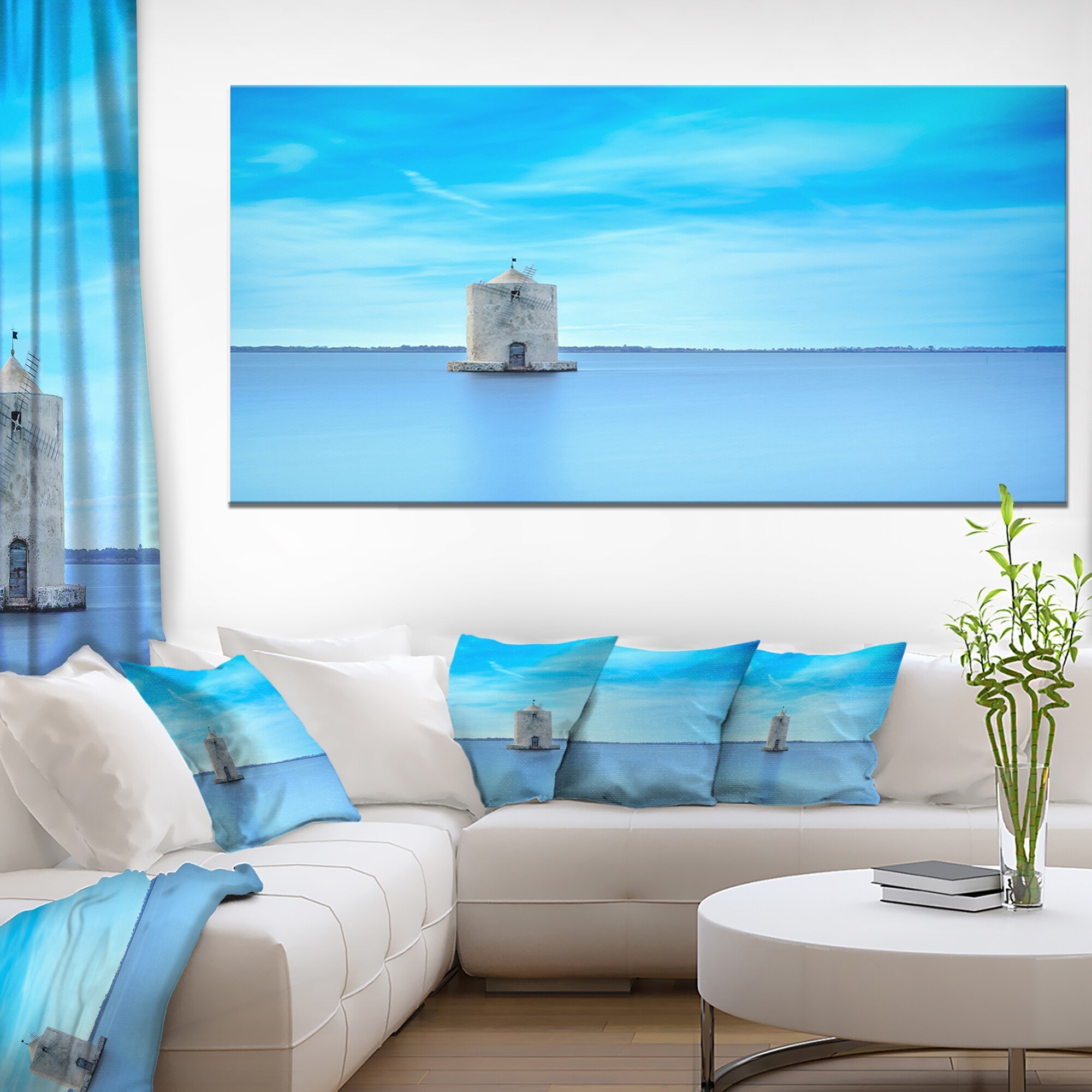 Designart "Old Spanish Windmill in Blue Lagoon" Extra Large Seashore Canvas Art