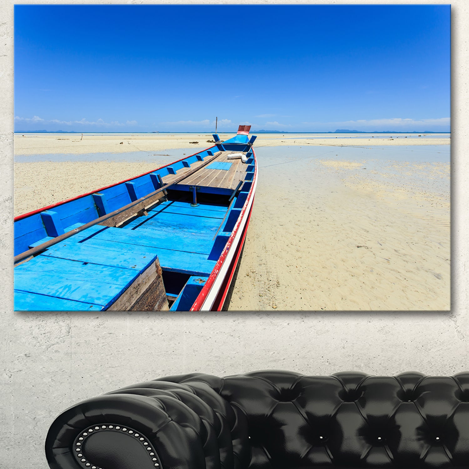 Designart "Long Tail Boat Stand at the Beach" Modern Seashore Canvas Wall Art Print