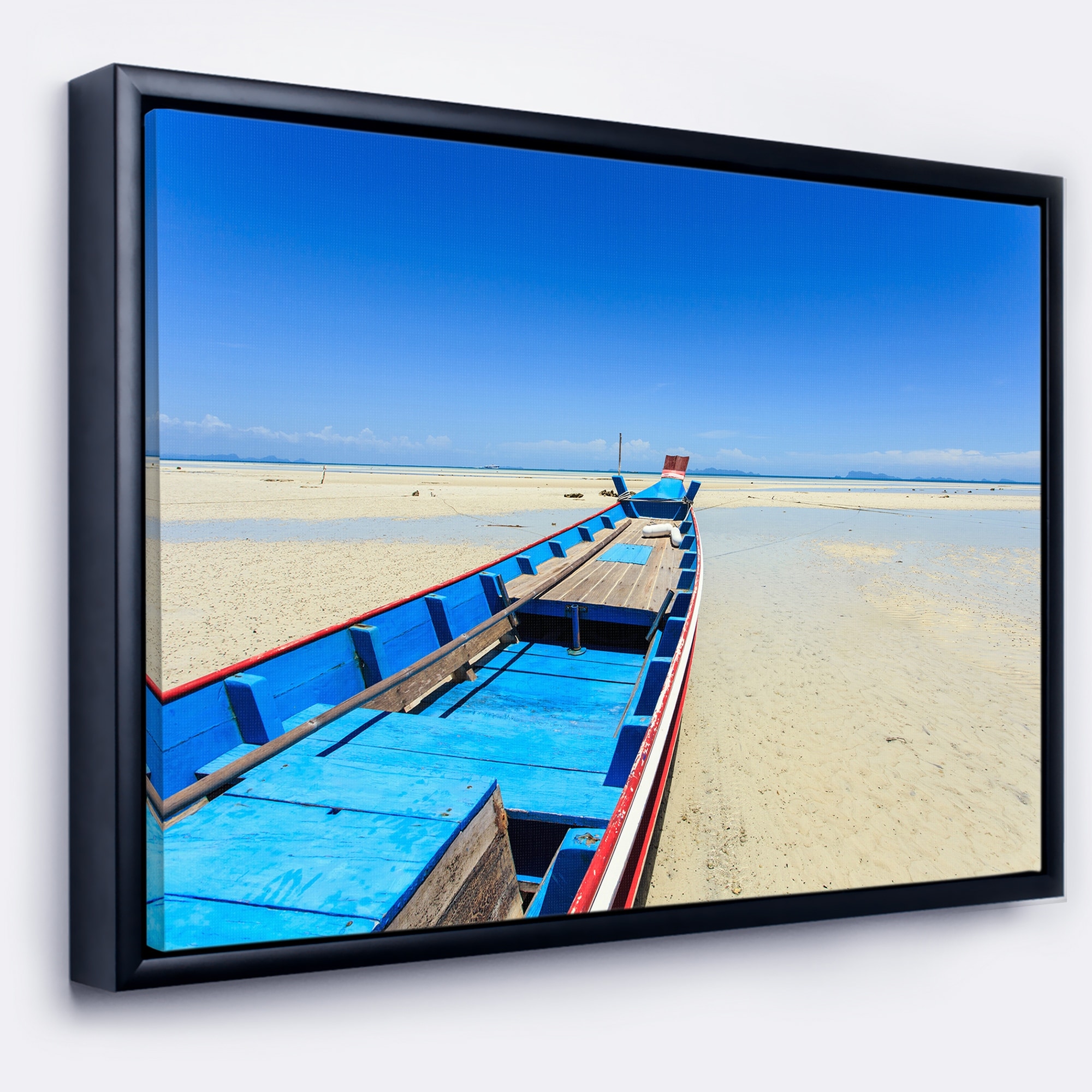 Designart "Long Tail Boat Stand at the Beach" Seashore Framed Canvas Art Print