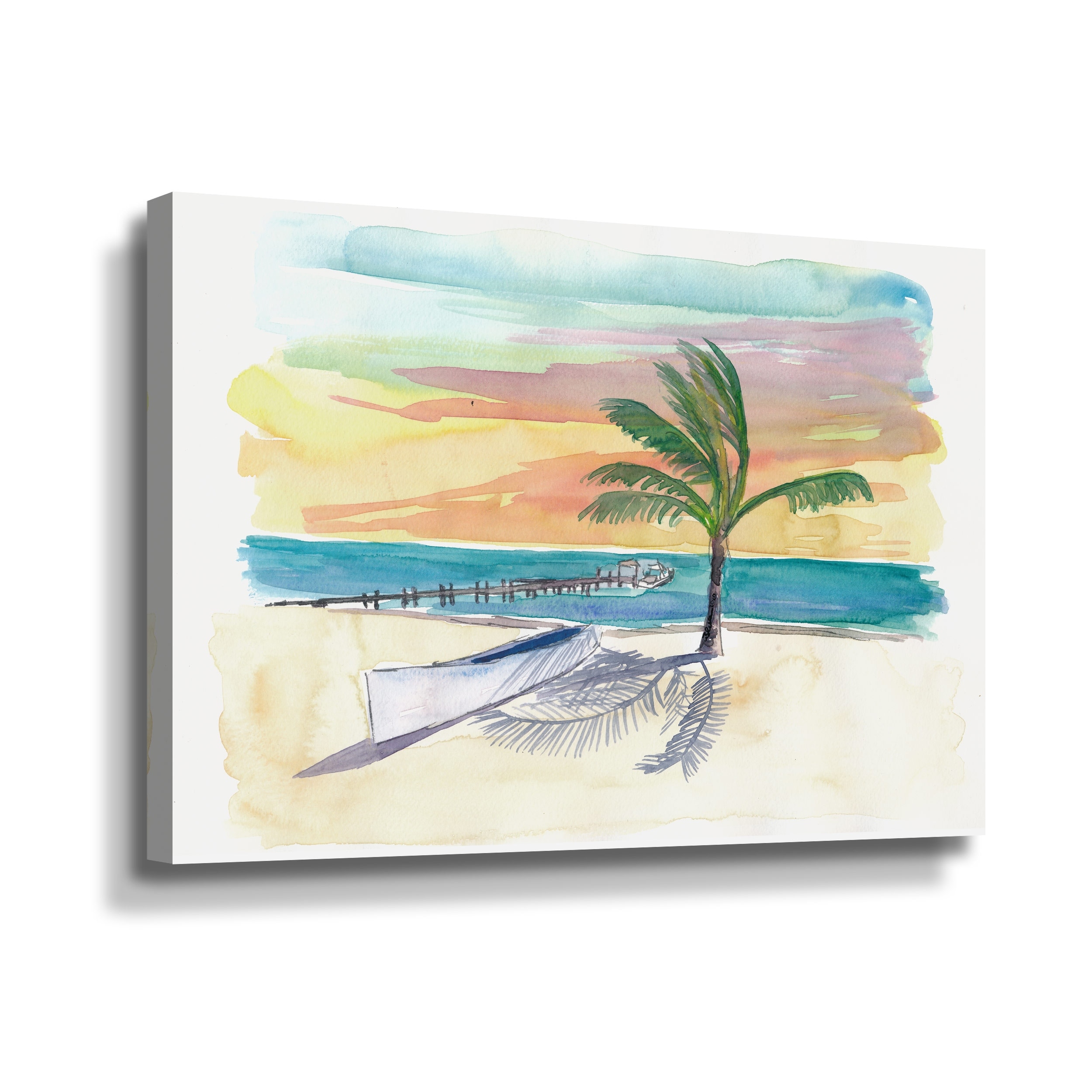 Florida Keys Beach Boat Scene at Sunset Gallery Wrapped Canvas - White