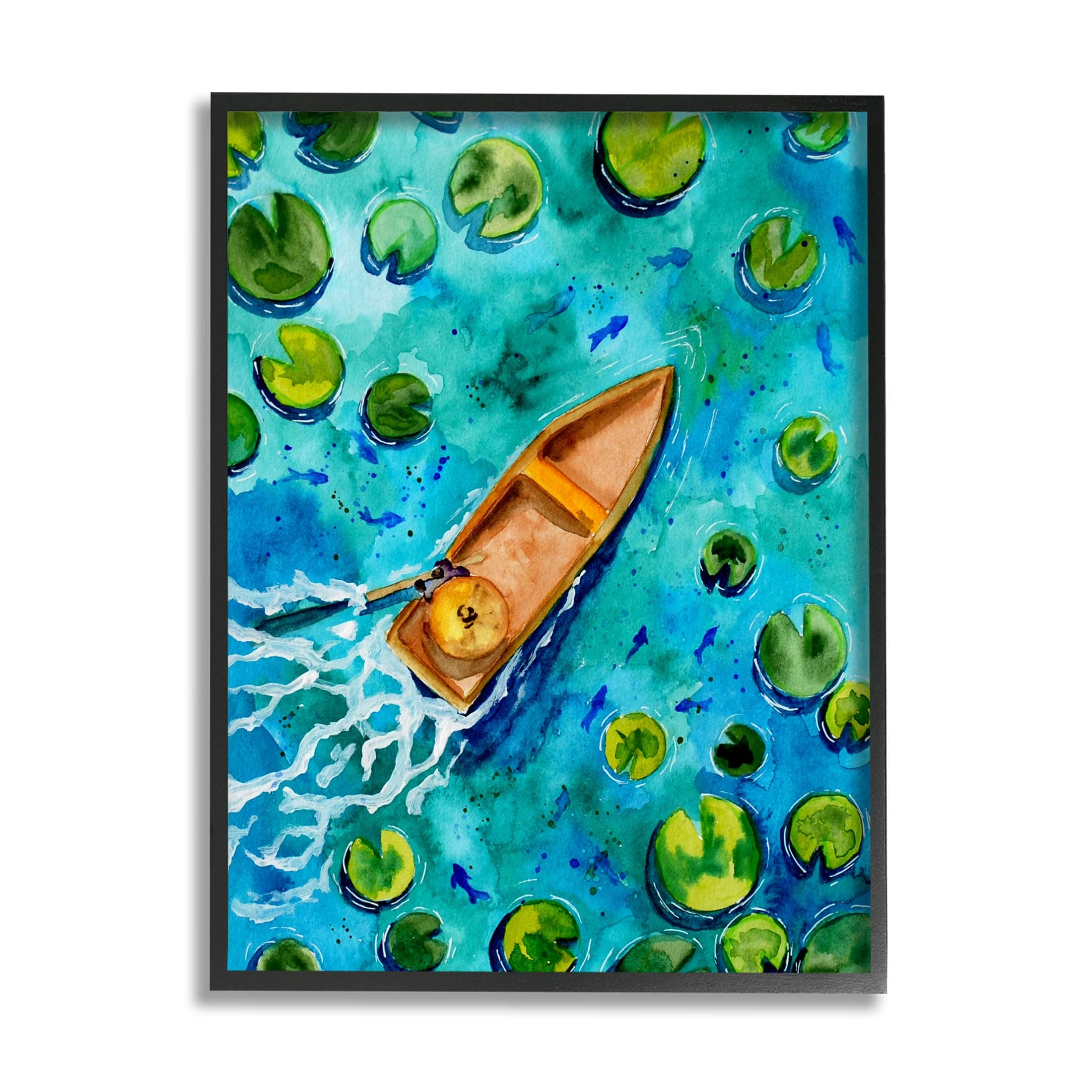 Stupell Industries Pond Lilies Lake Boat Splash Framed Giclee Art by Sebastian Grafmann