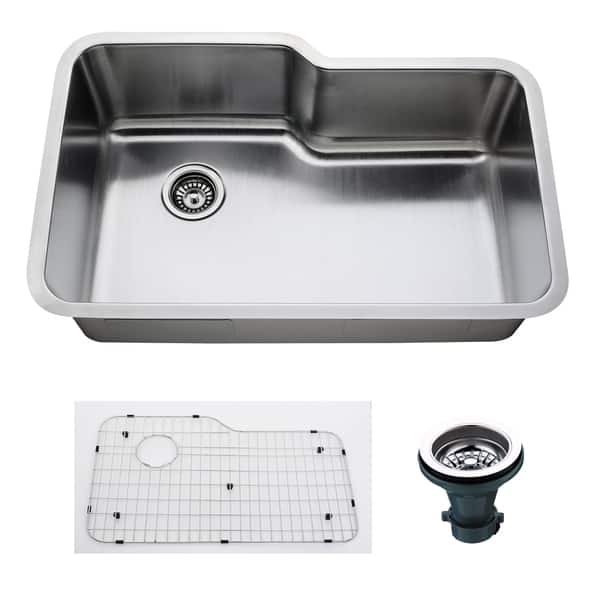 Ruvati 32-inch Slope Bottom Offset Drain Undermount Kitchen Sink Single Bowl Stainless Steel - RVH7490 - 8' x 11'