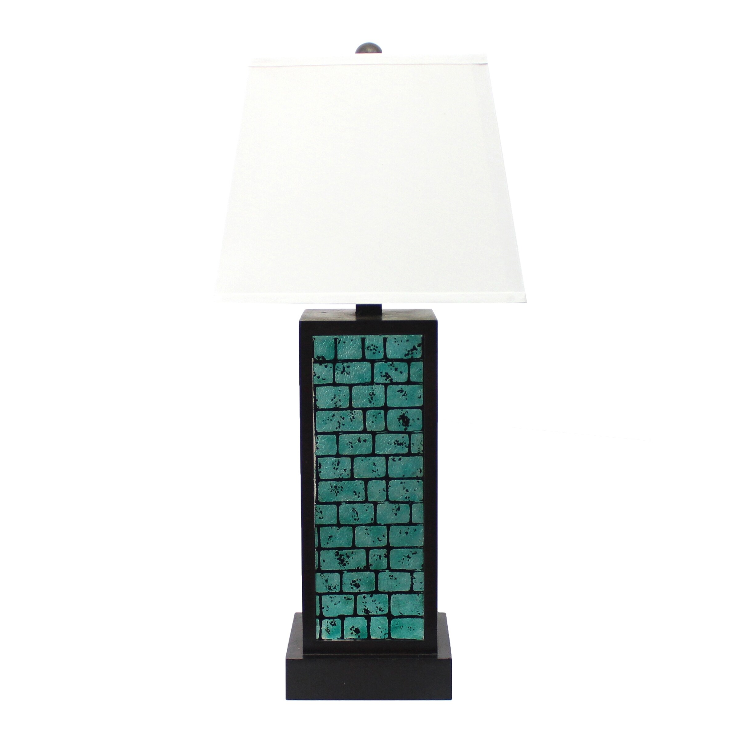 Rectangular Metal Frame Table Lamp with Brick Pattern, White and Blue