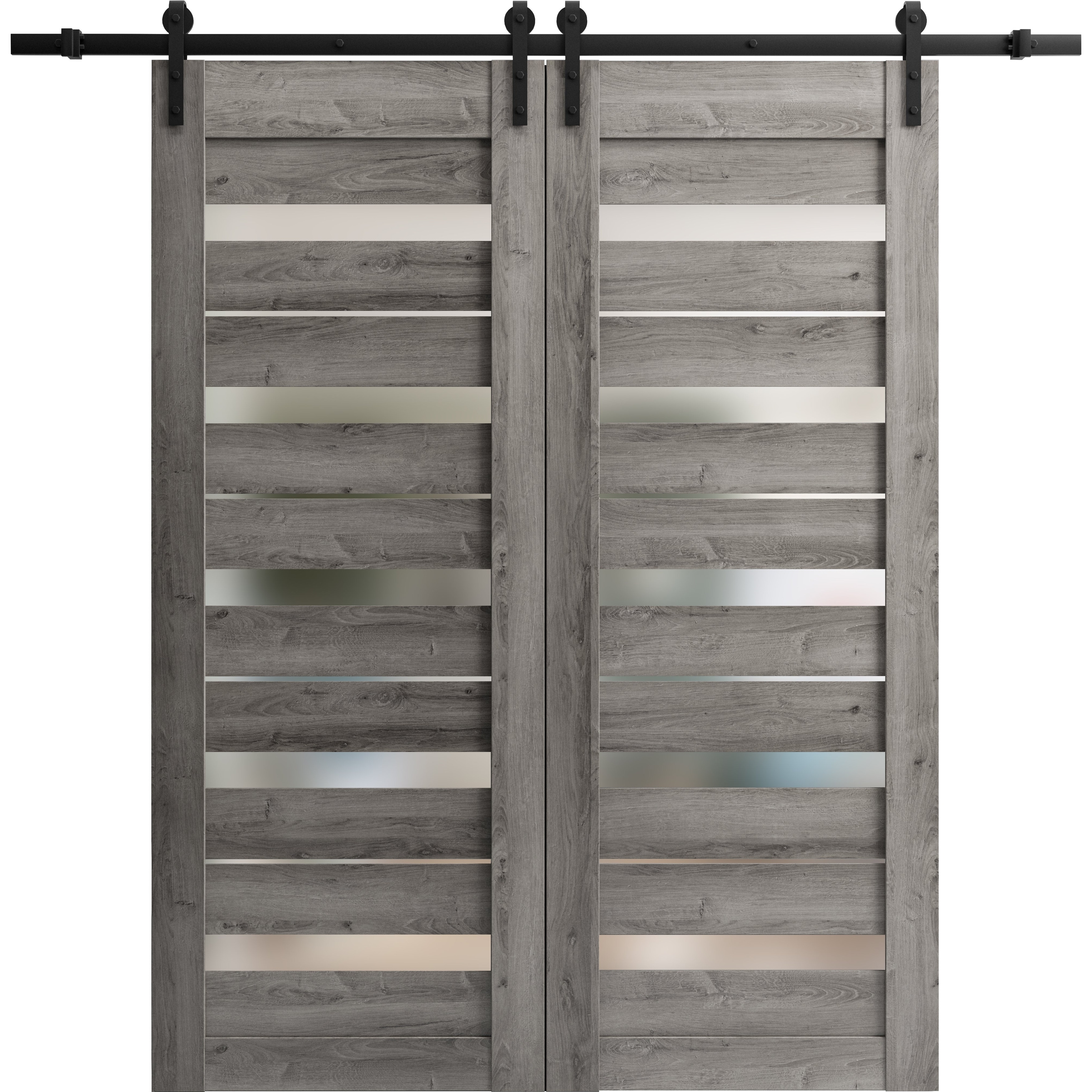 Sliding Closet Barn Bypass Doors 36 x 80 inches | Veregio 7288 Light Grey Oak with Frosted Glass