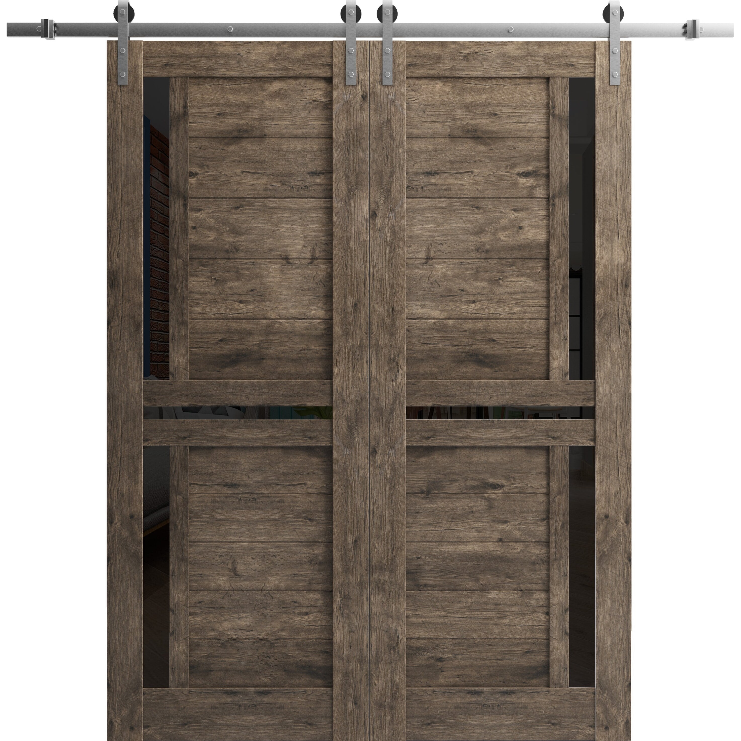 Sliding Closet Barn Bypass Doors 36 x 80 inches | Veregio 7588 Cognac Oak with Black Glass
