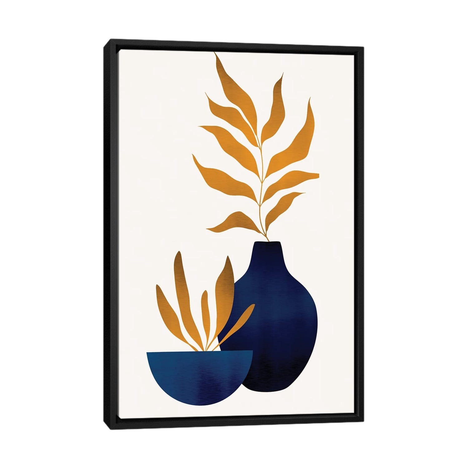 iCanvas "Blue And Neutral Floral" by Silvia Vassileva Framed Canvas Print