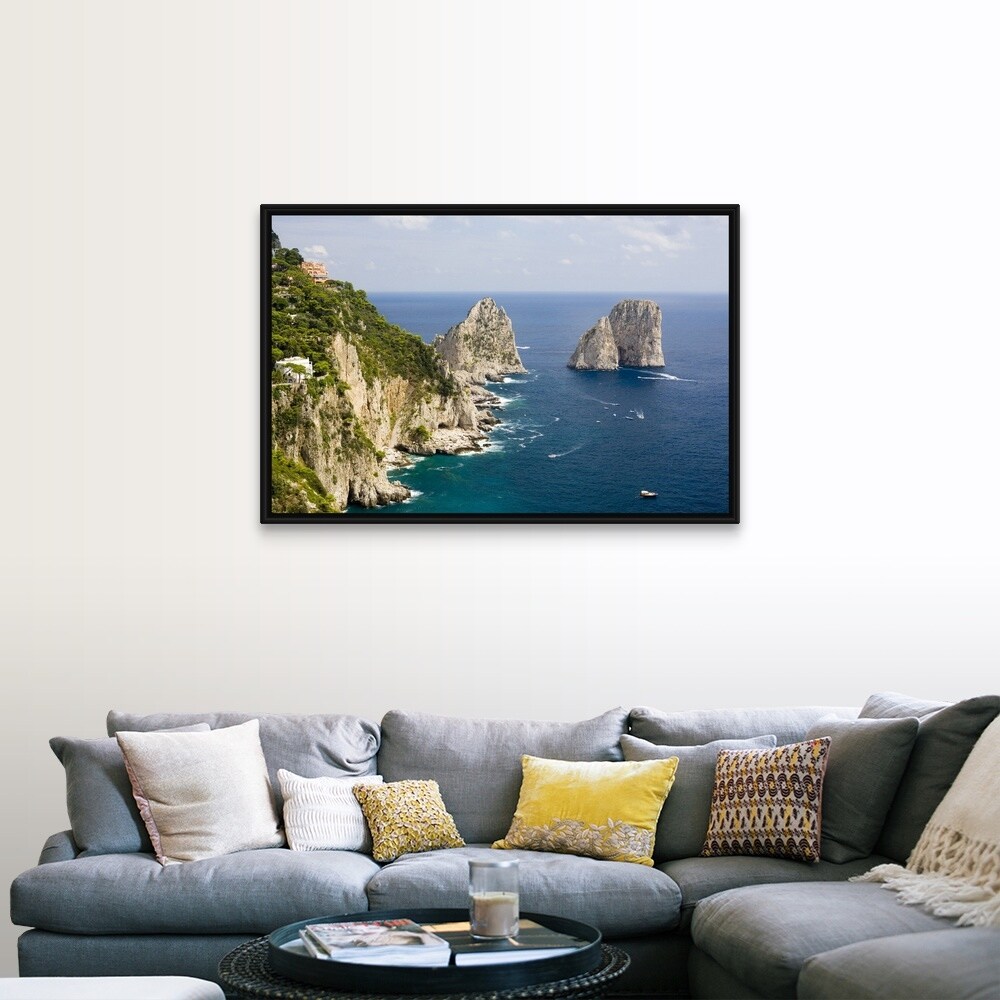 Faraglioni, Capri, Amalfitan coast Black Float Frame Canvas Art