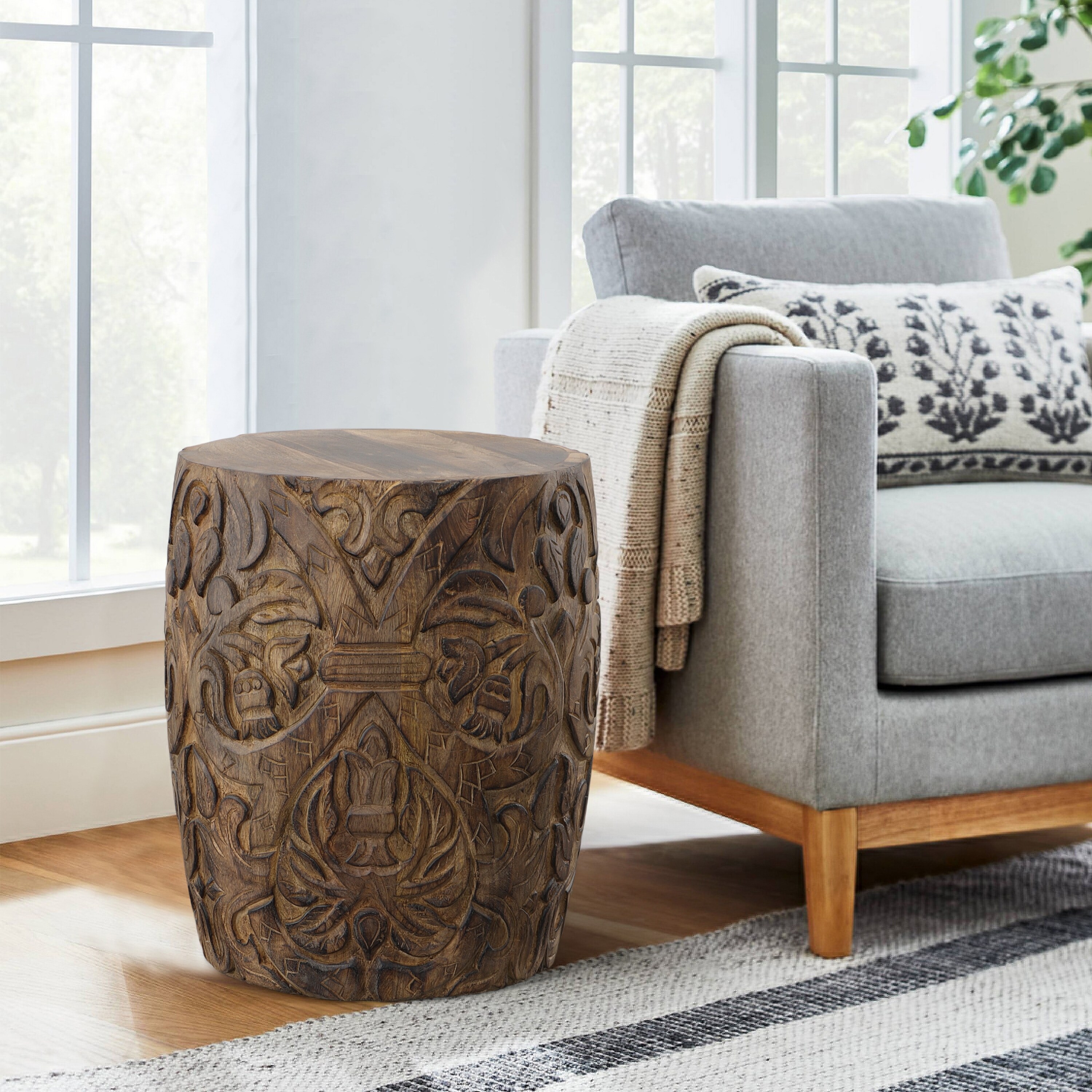 Wooden Carving Round Side Table - Small - 25 X 15 X 15 Inches