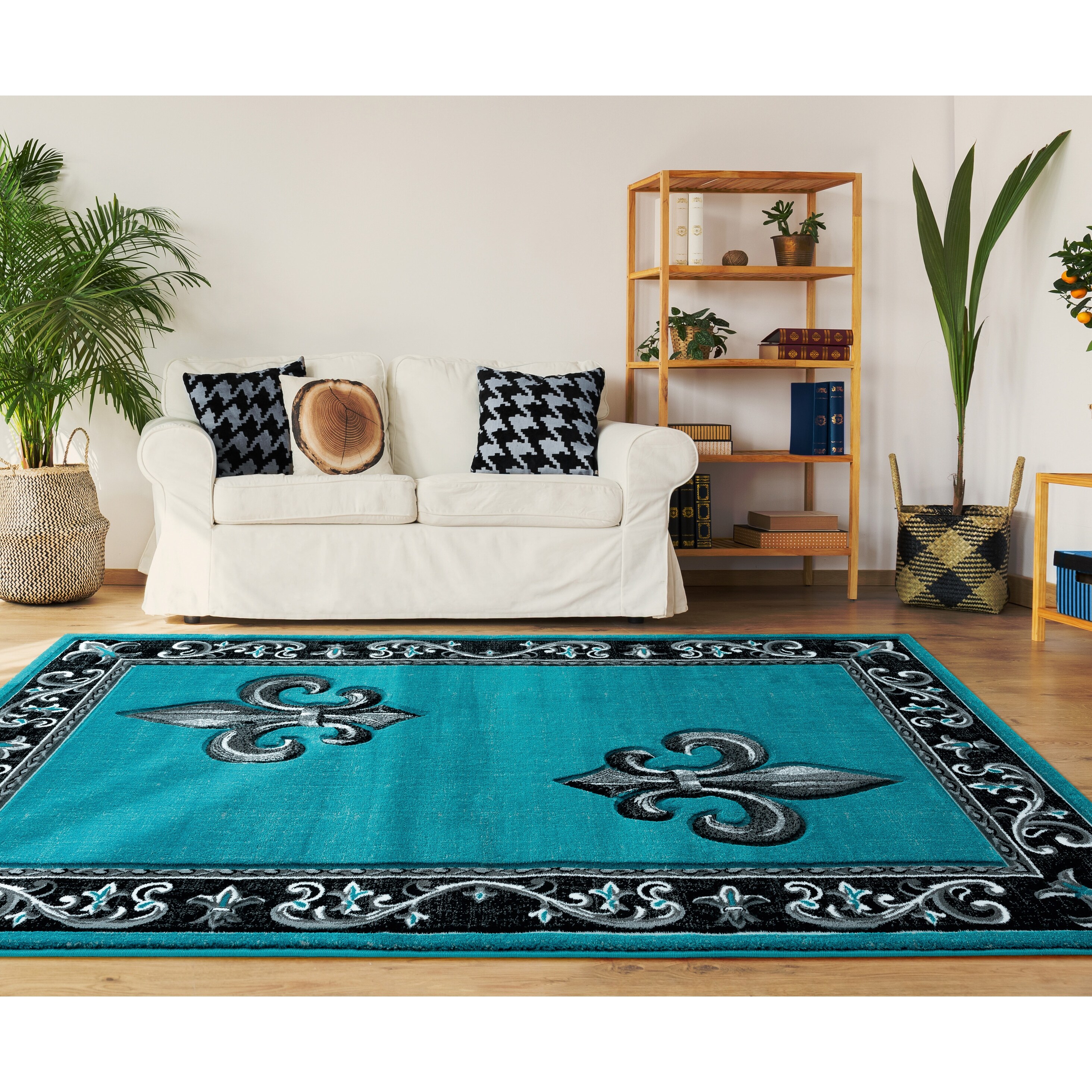 HomeRoots 5'x8' Green Hand Carved Fleur De Lis Area Rug