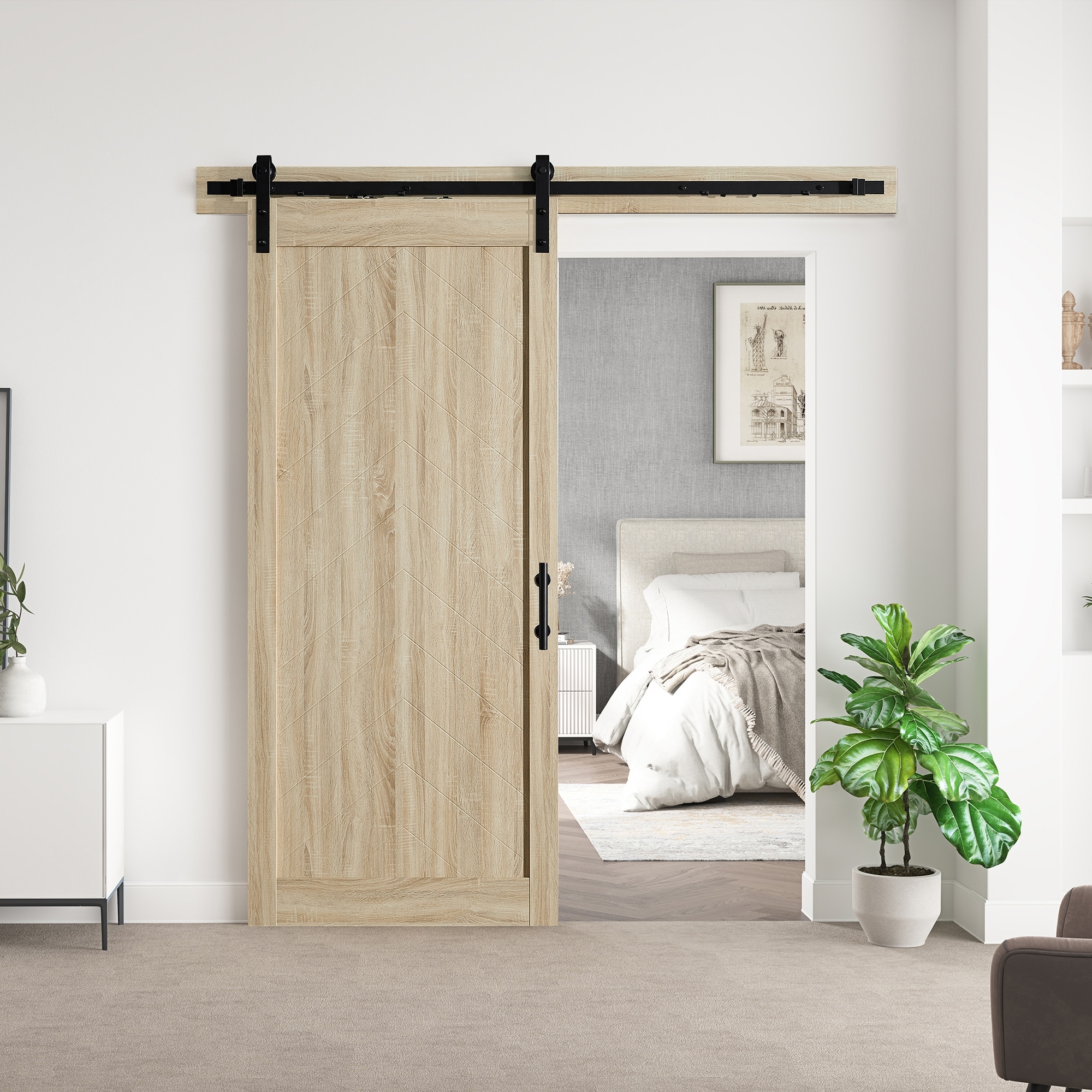 OVE Decors Cooper Barn Door Kit in Textured French Oak with Included U-Shape Rollers in Black