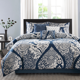 Madison Park Kalina Dark Blue 8 Piece Cotton Printed Reversible Comforter Set