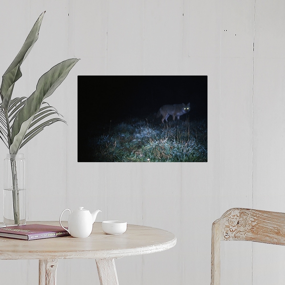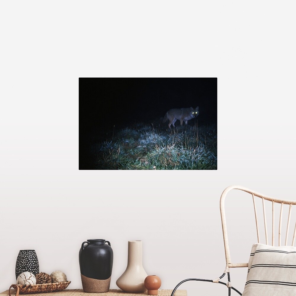 "Glowing eyes of eastern coyote hunting at night." Poster Print - Multi