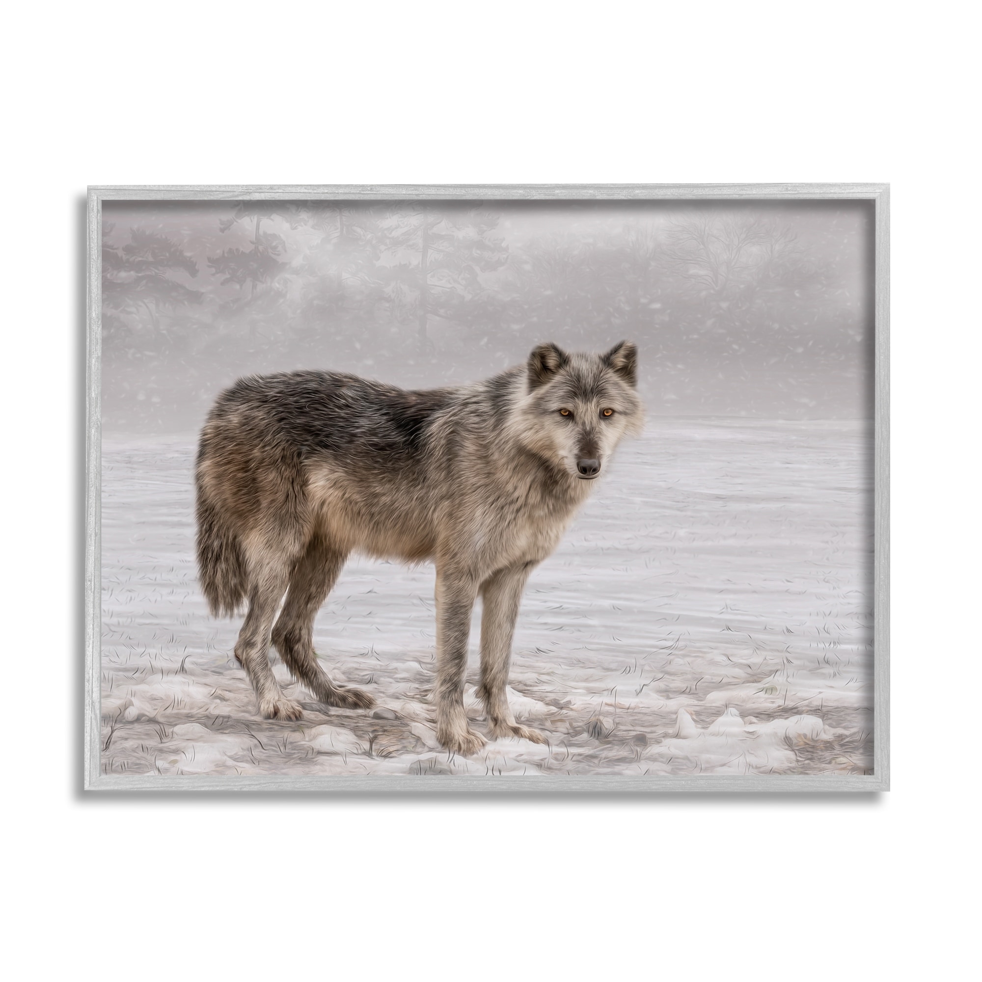 Stupell Industries Lone Coyote Wolf Snowy Field Landscape Intricate Details Framed Wall Art, Design by Kelley Parker