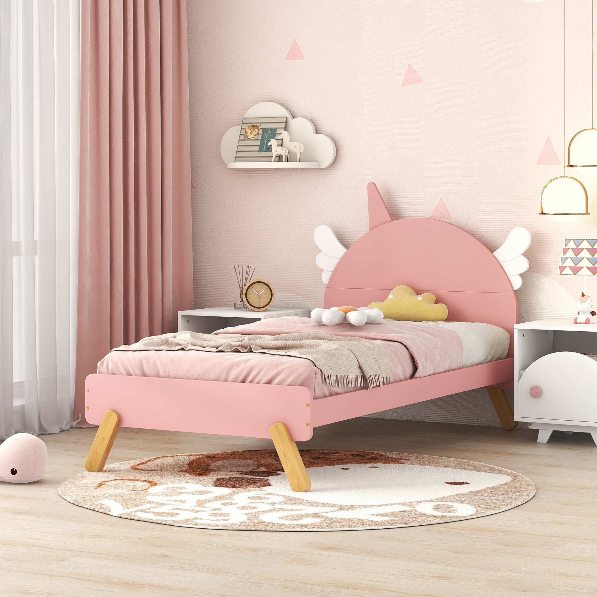 Unicorn Shape Wooden Cute Twin Size Platform Bed