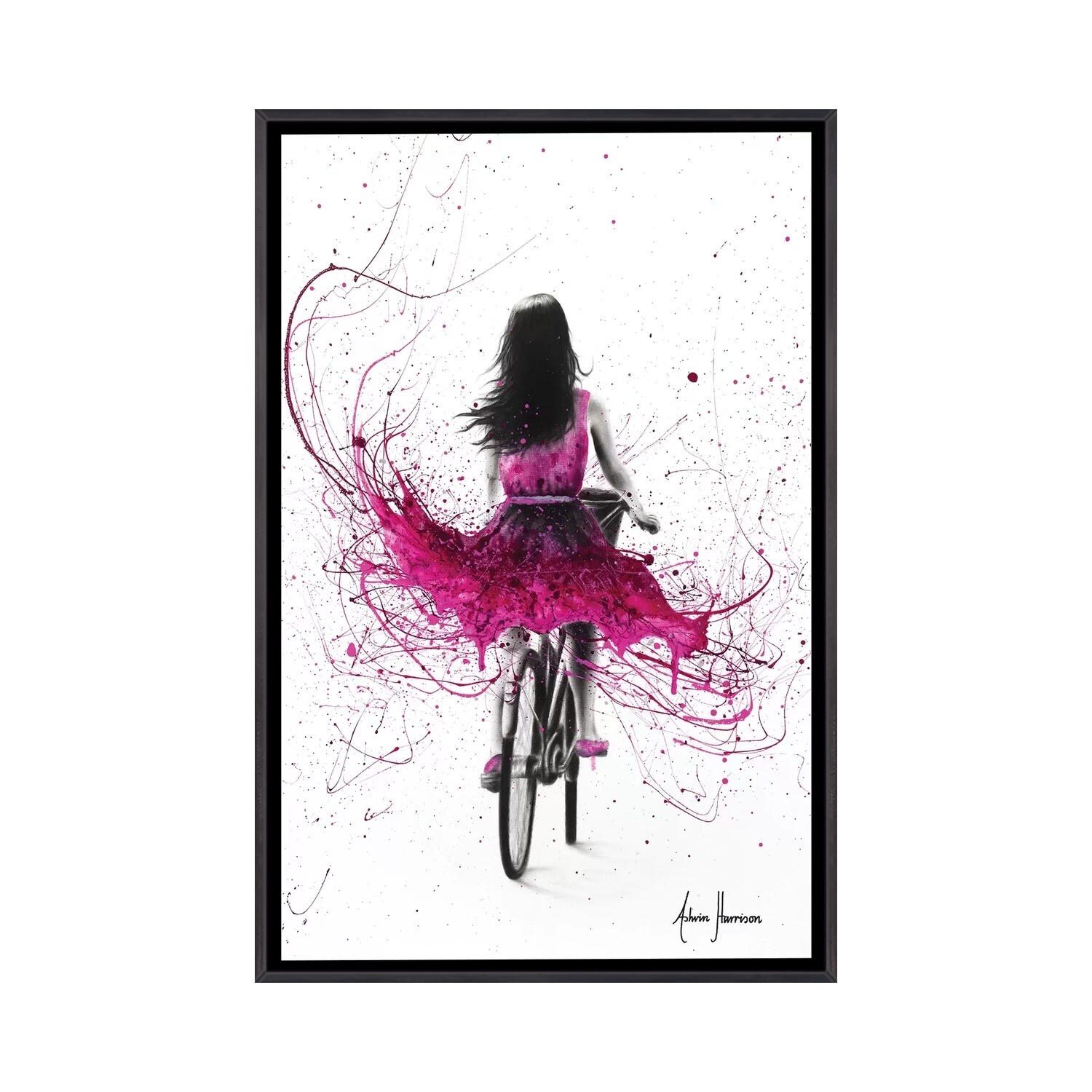 iCanvas "Rainy Day Love Cycle" by Loui Jover Framed