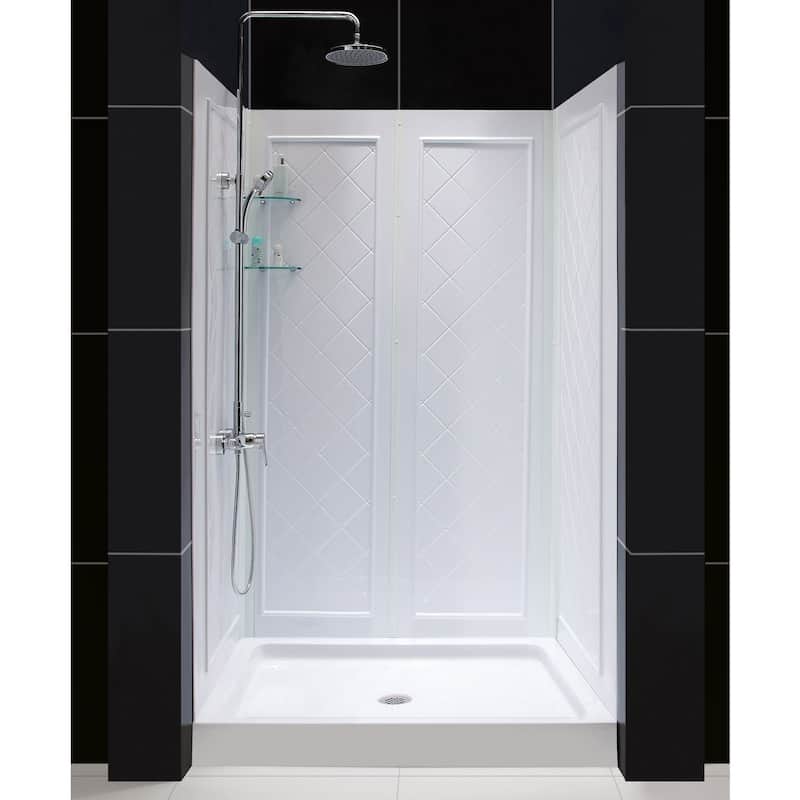 DreamLine 34 in. D x 48 in. W x 76 3/4 in. H Single Threshold Shower Base and Acrylic Backwall Kit - 34" x 48"