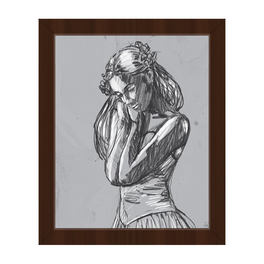 Dancer Sketch Grey Framed Canvas Wall Art Print