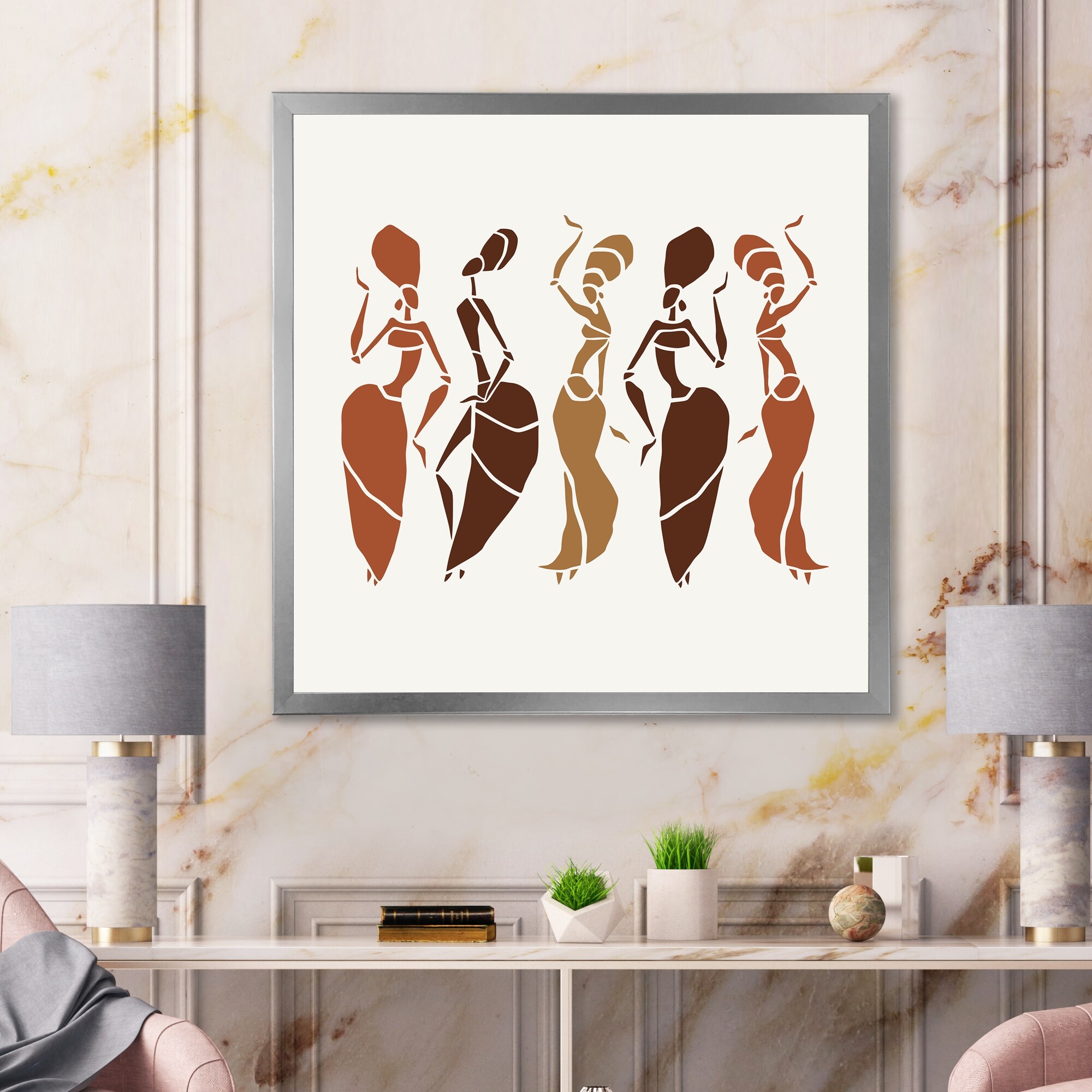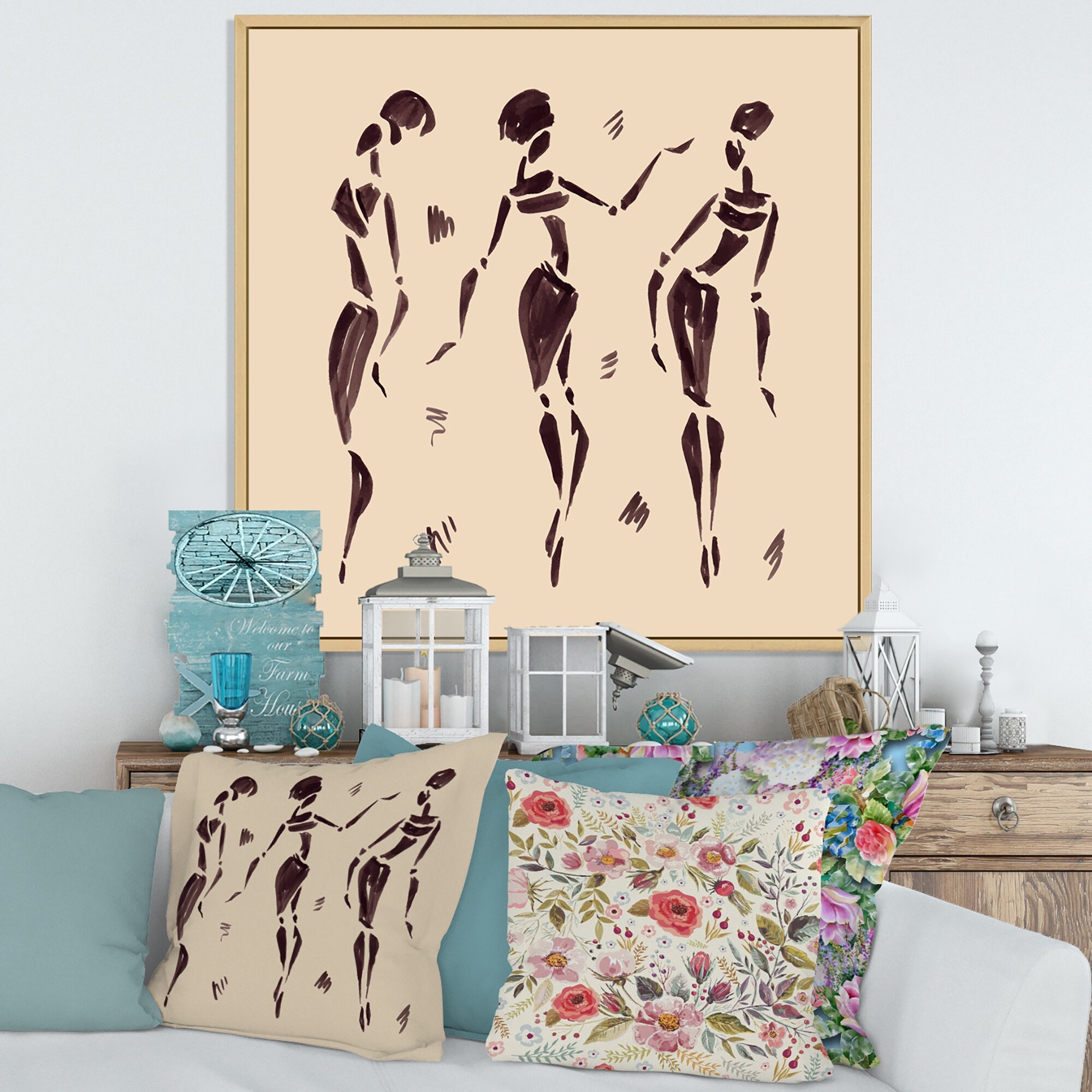 Designart "Abstract Brown Dancers" Glam Framed Canvas Wall Art Print