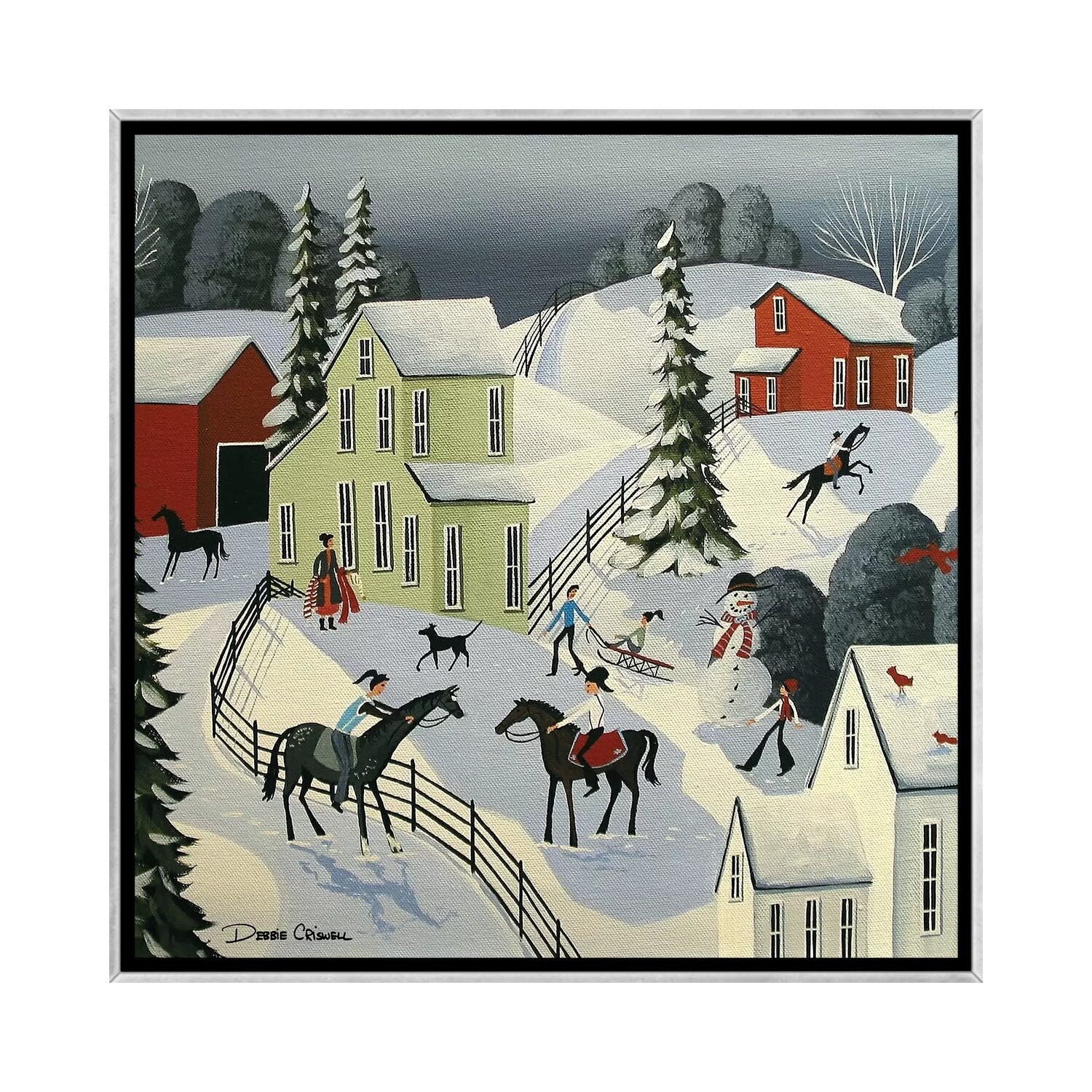 iCanvas "Sleding The Day Away" by Debbie Criswell Framed Canvas Print