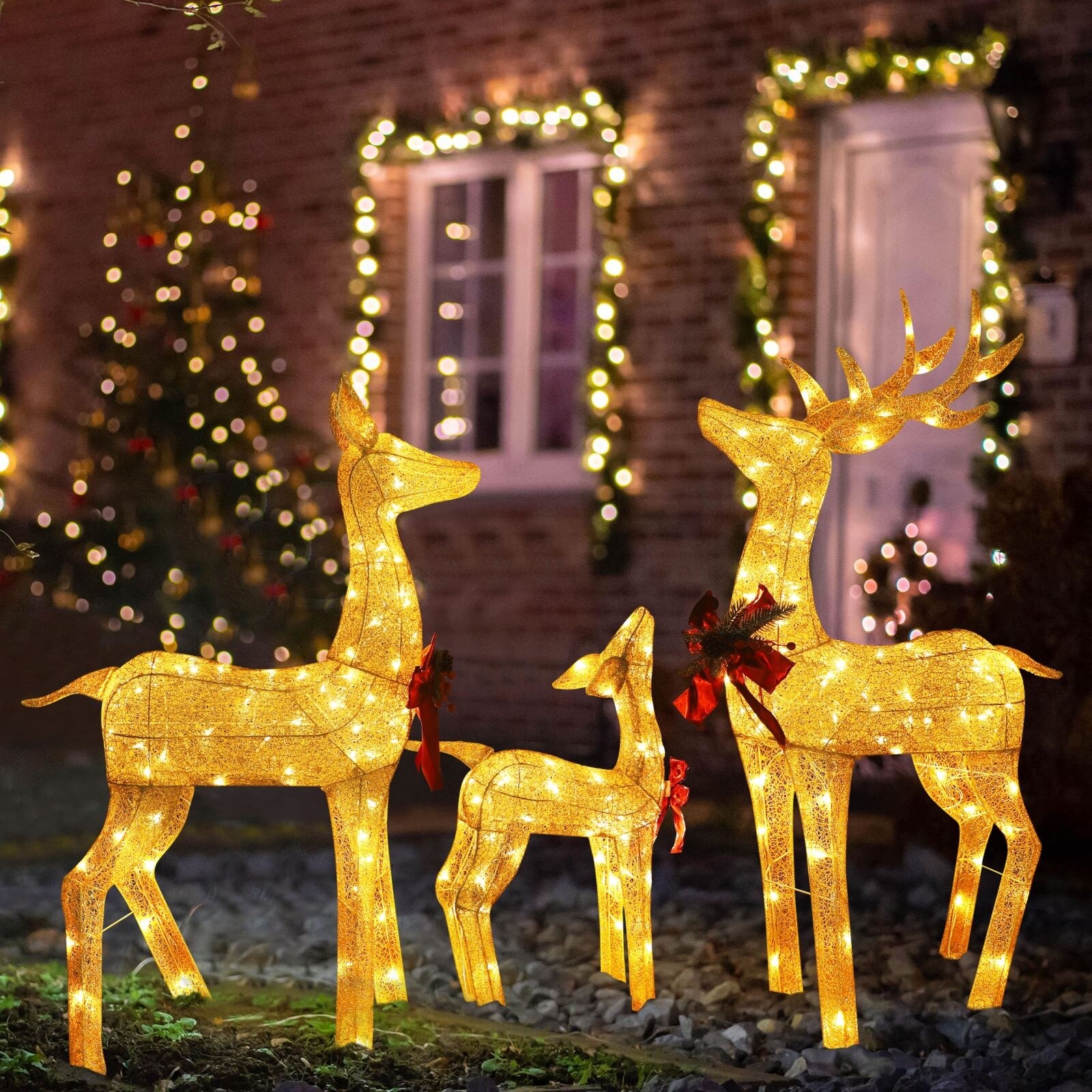 VEIKOUS 3 Piece Deer Family Set Outdoor Christmas Holiday Decoration with Lights