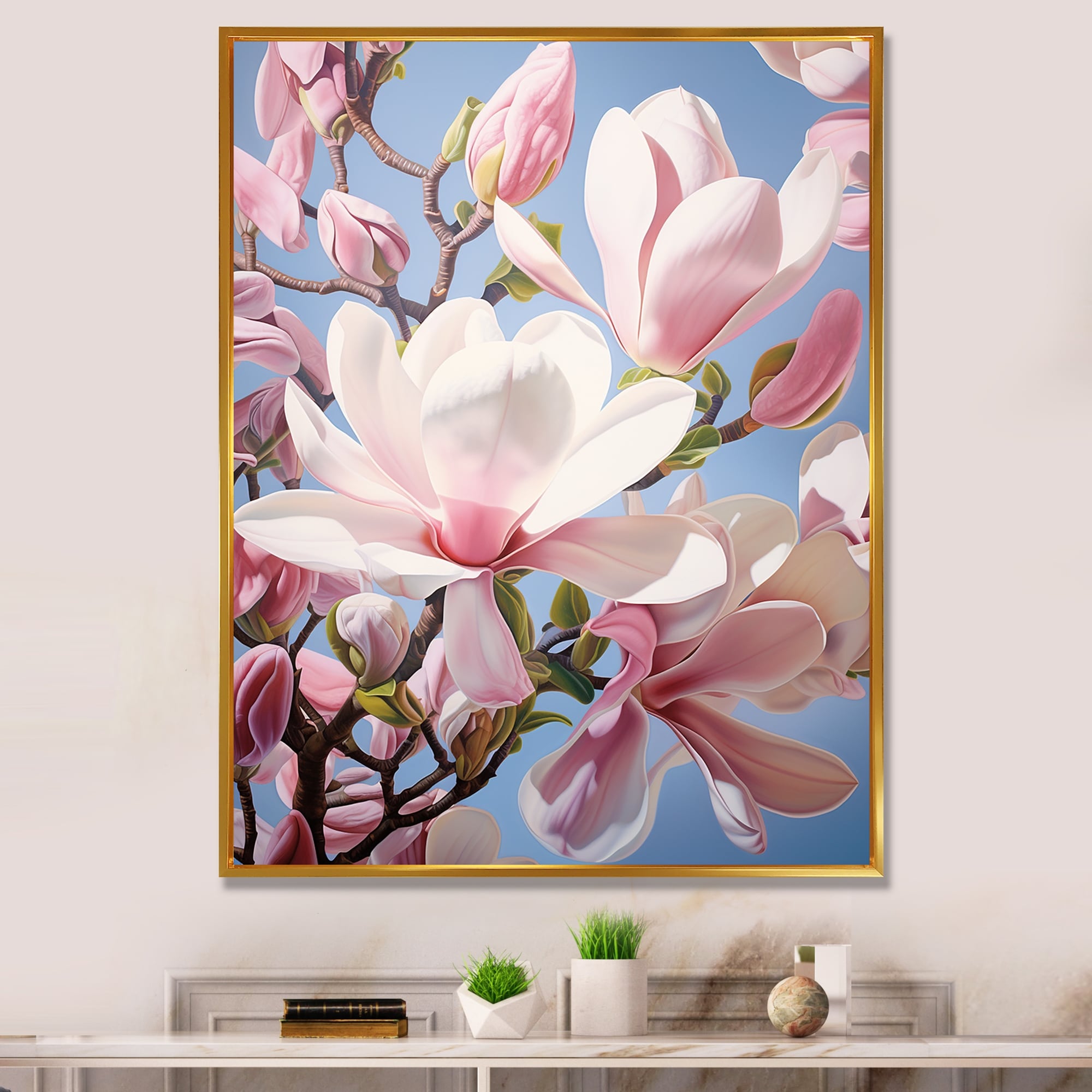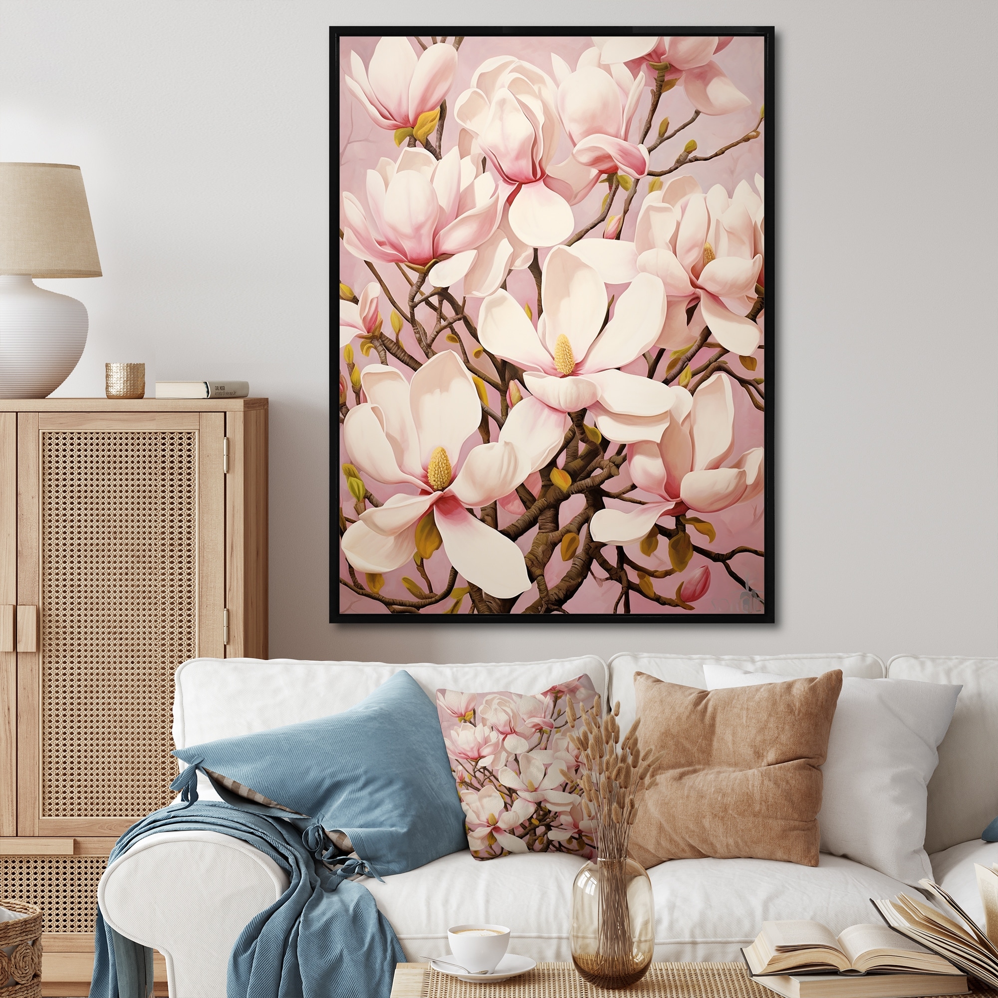 Designart "Pink White Magnolias Magnolia Delight" Magnolias Framed Canvas Print