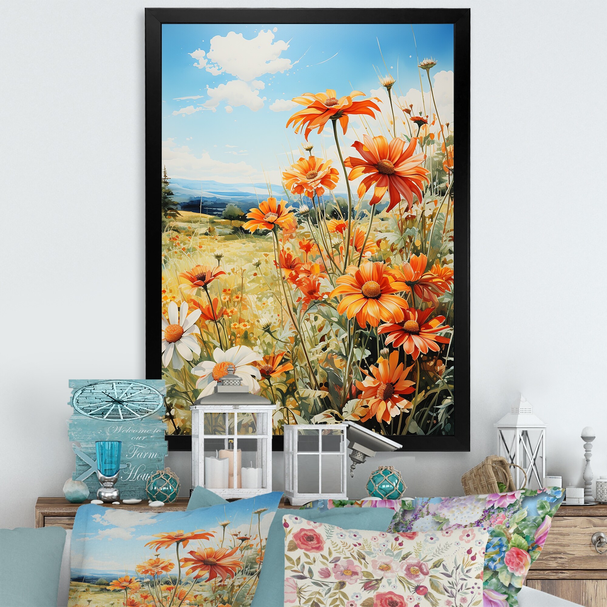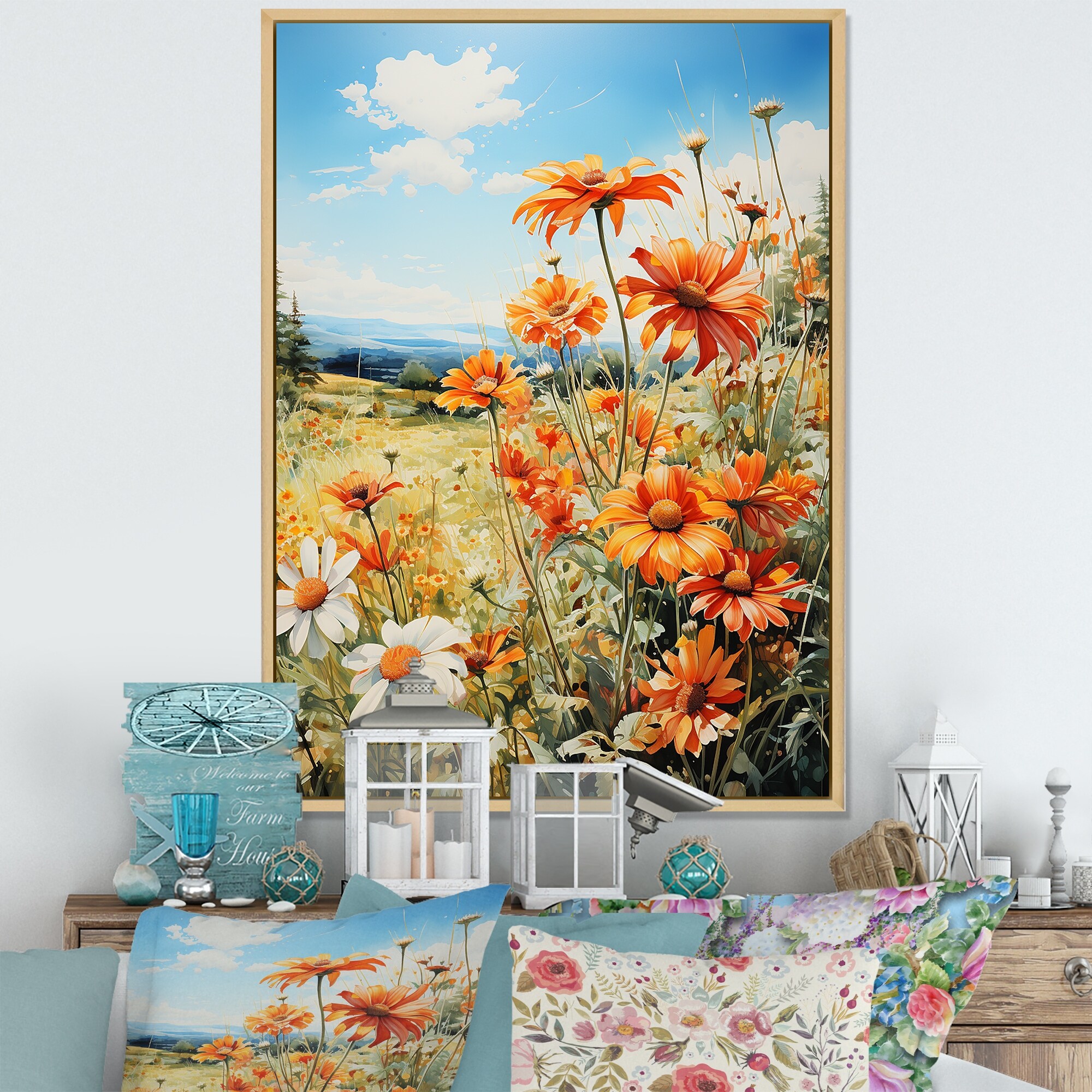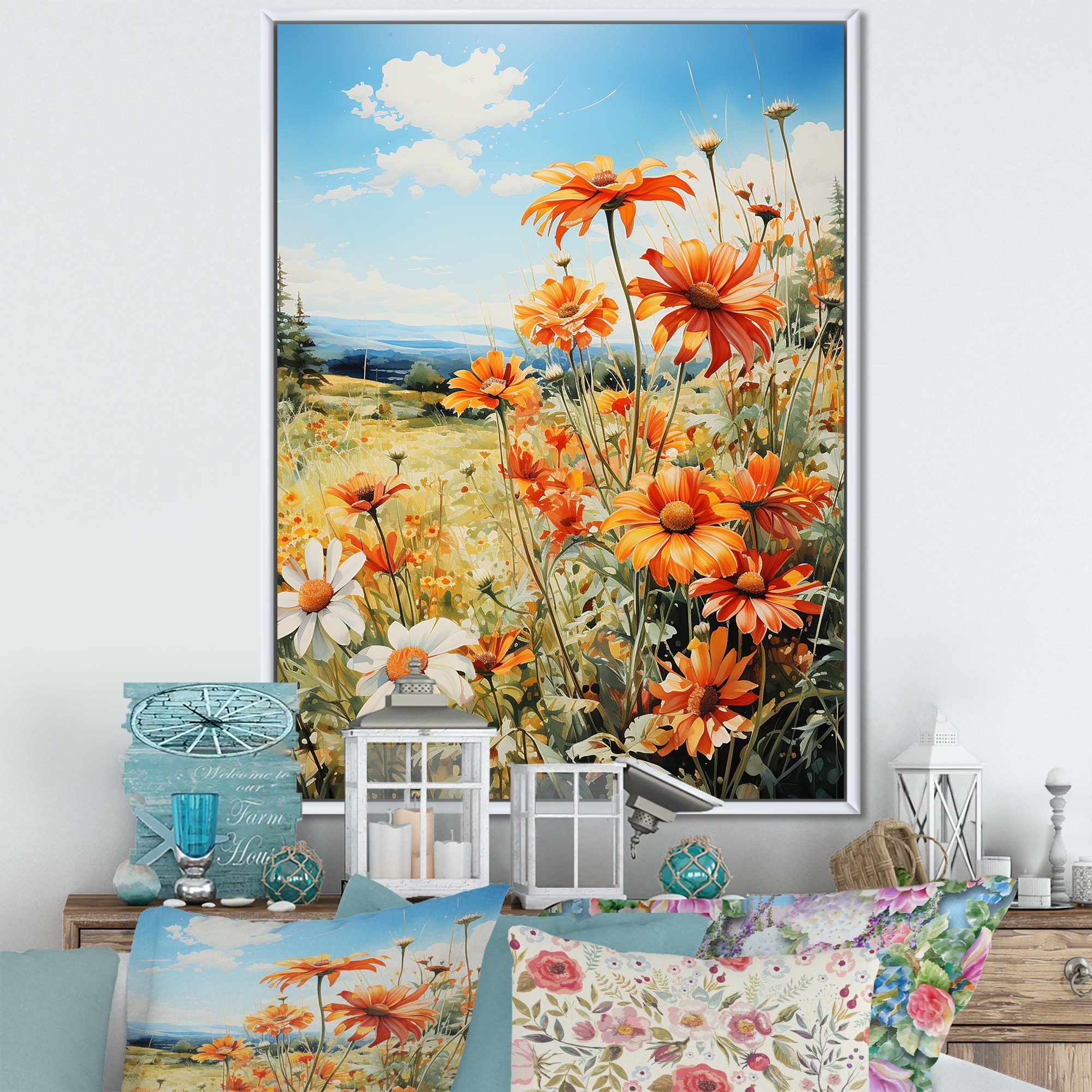 Designart "Meadow Daisy Delight" Meadow Framed Canvas Art Print