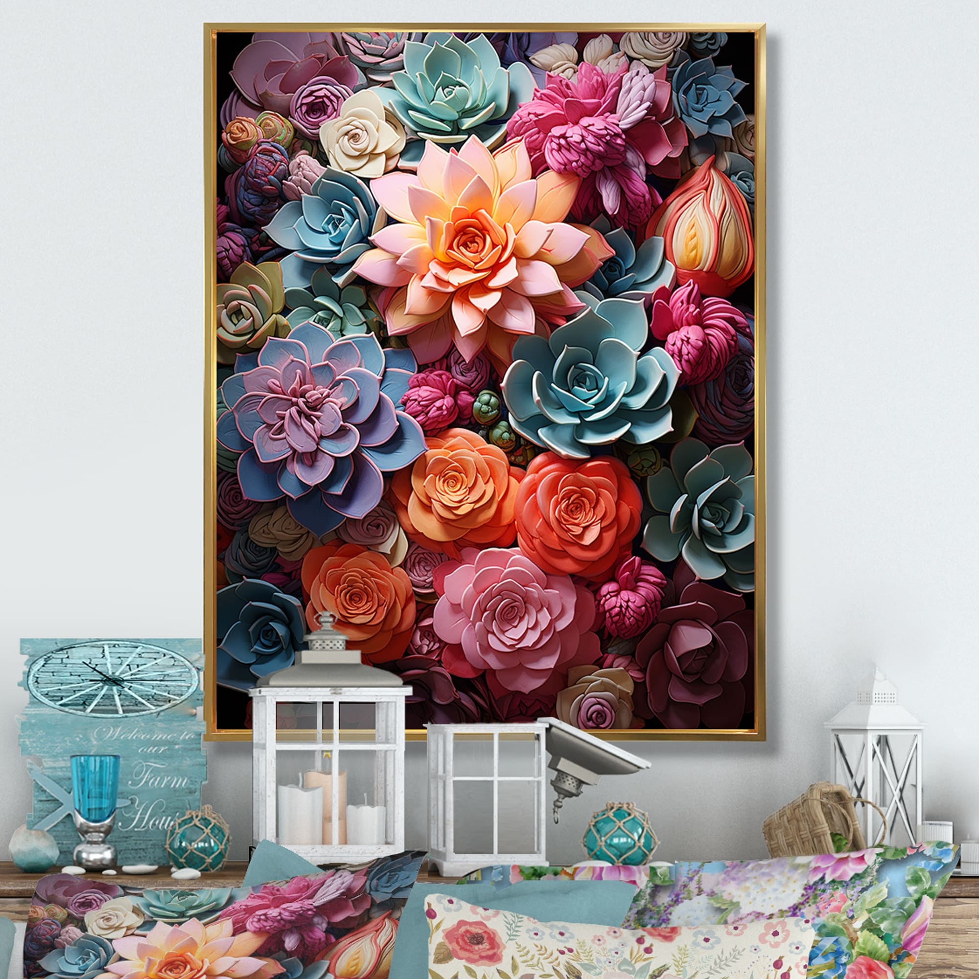 Designart "Colorful Succulents Succulent Delight" Succulent Framed Canvas Wall Art