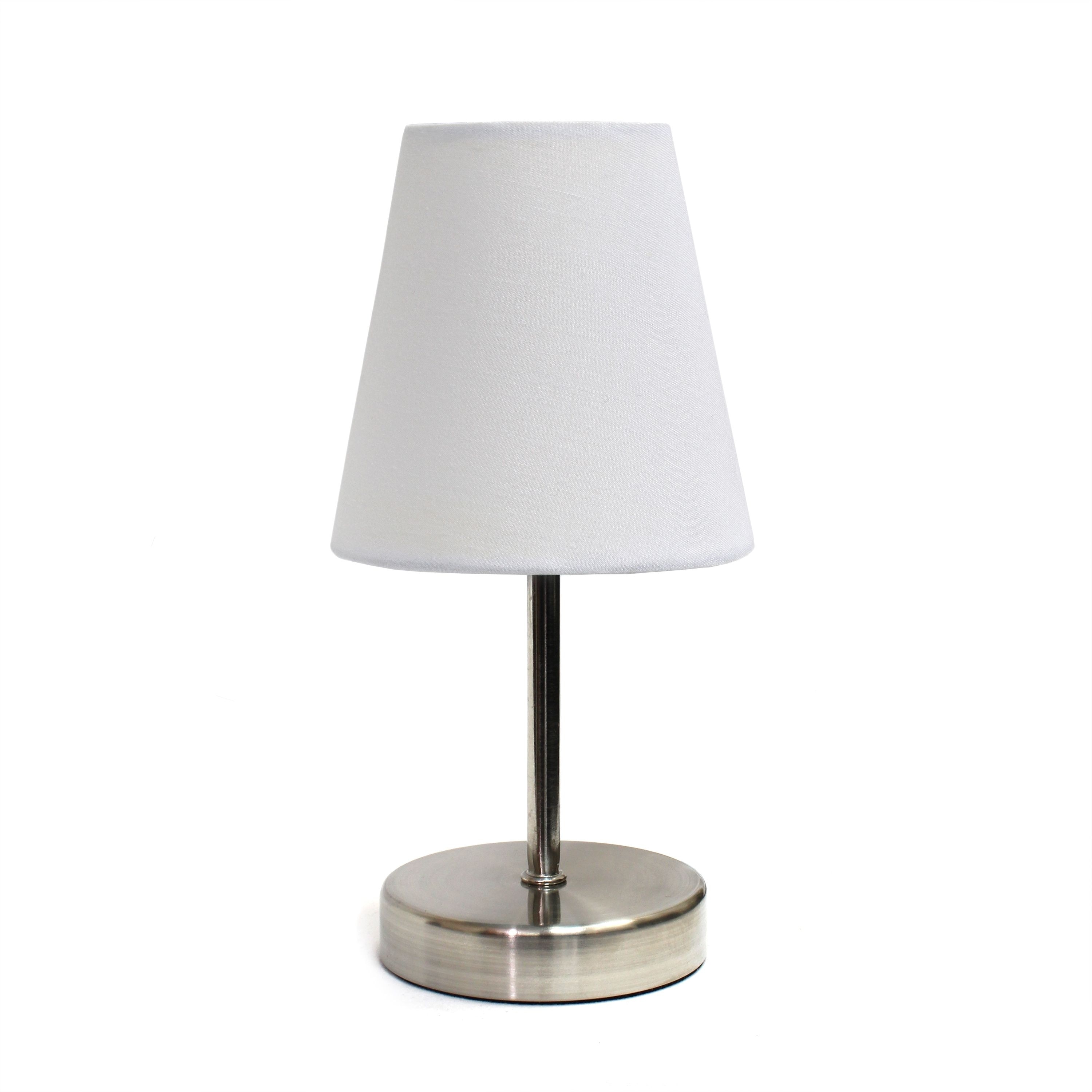 10.5" Traditional Petite Metal Stick Bedside Table Desk Lamp in Sand Nickel with Fabric Empire Shade for Home Decor