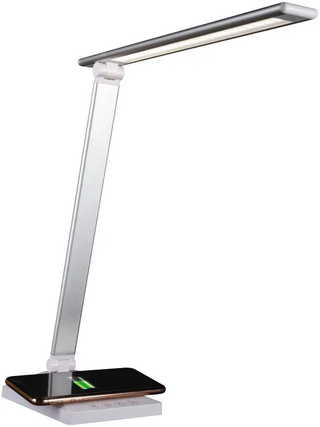 OttLite CSDQA02W-SHPR Wellness Series Entice LED Desk Lamp with Wireless Charging - Silver Arm - 11" to 22" High - White
