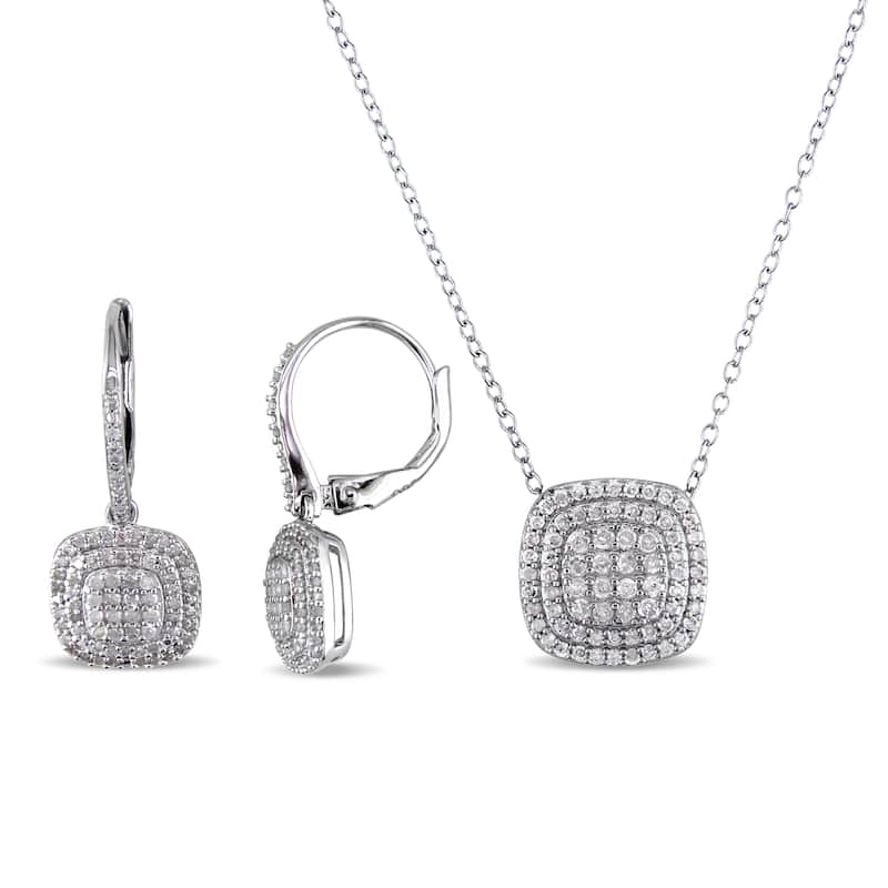 Miadora Sterling Silver 1ct TDW Diamond Cluster Necklace and Earrings Set - White