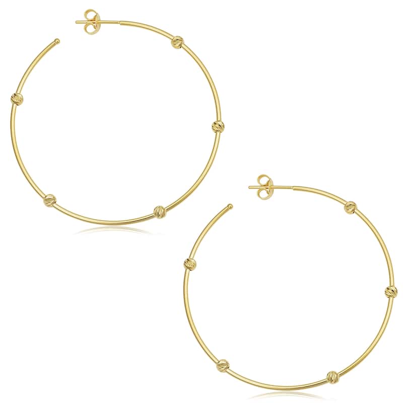 14k Yellow Gold Diamond-cut Bead Station Open Hoop Earrings