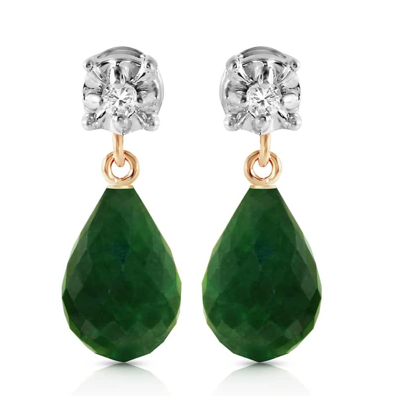 17.66 Carat 14K Solid Gold Stud Earrings Diamond Emerald