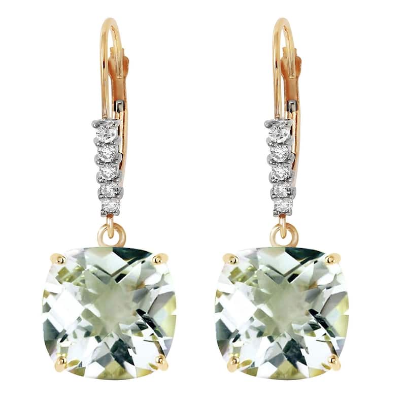 7.35 Carat 14K Solid Gold Leverback Earrings Diamond Green Amethyst
