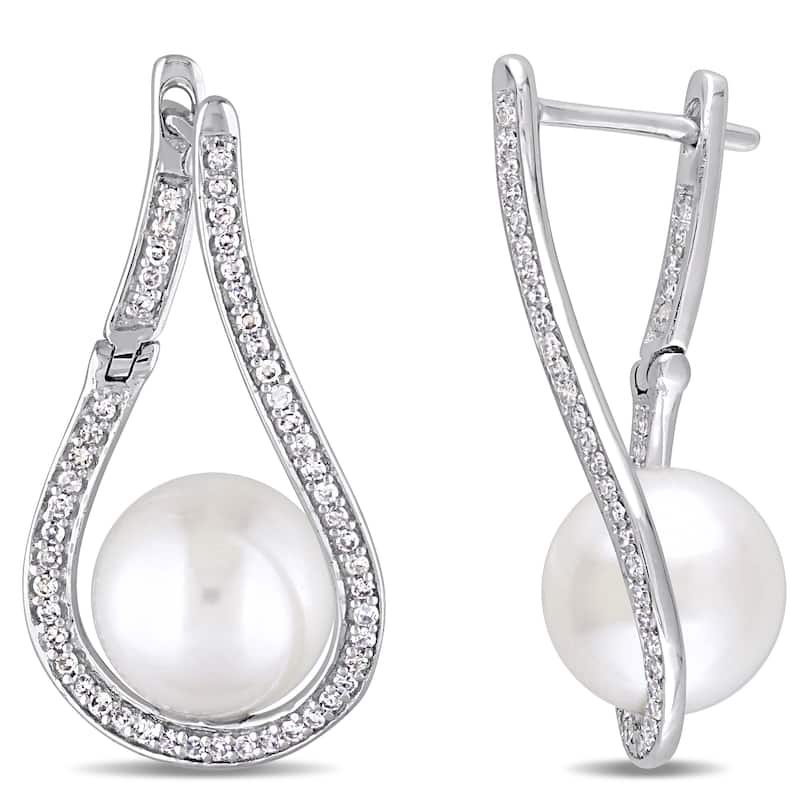 Miadora Signature Collection 14k White Gold White Cultured South Sea Pearl and Diamond Accent Twist Drop Earrings (11-11.5 mm)