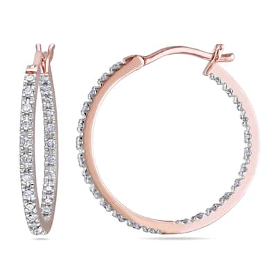 Miadora 14k Pink Gold 1/4 CT TDW Diamond Hoop Earrings