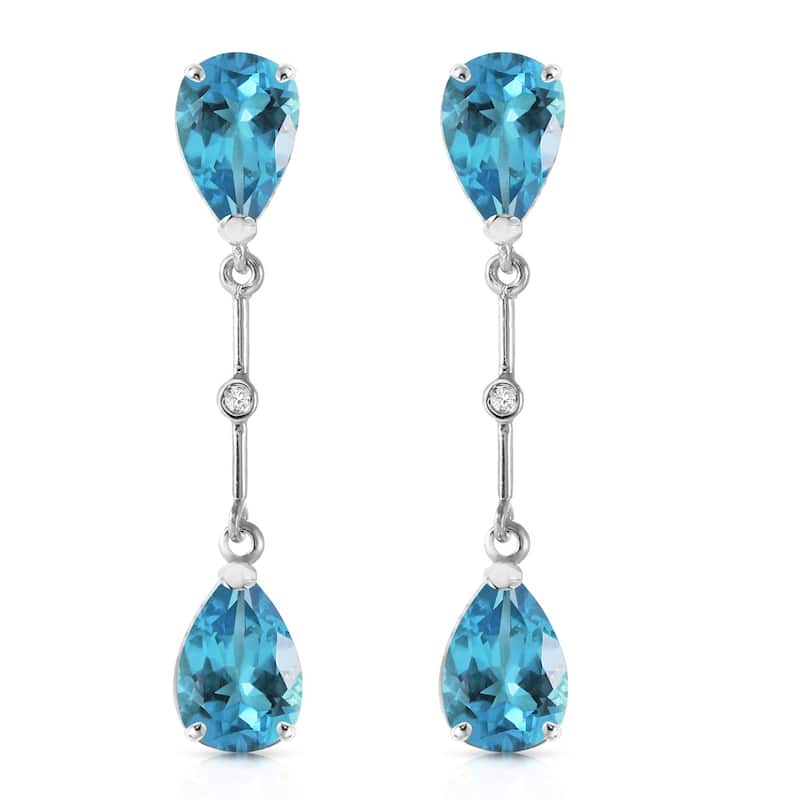 7.01 CTW 14K Solid White Gold Diamond Blue Topaz Dangling Earrings