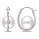Miadora 10k White Gold Cultured Freshwater Pearl and 1/6ct TDW Diamond Dangle Earrings (G-H, I2-I3) (9.5-10 mm)